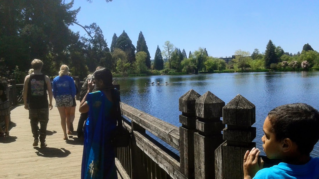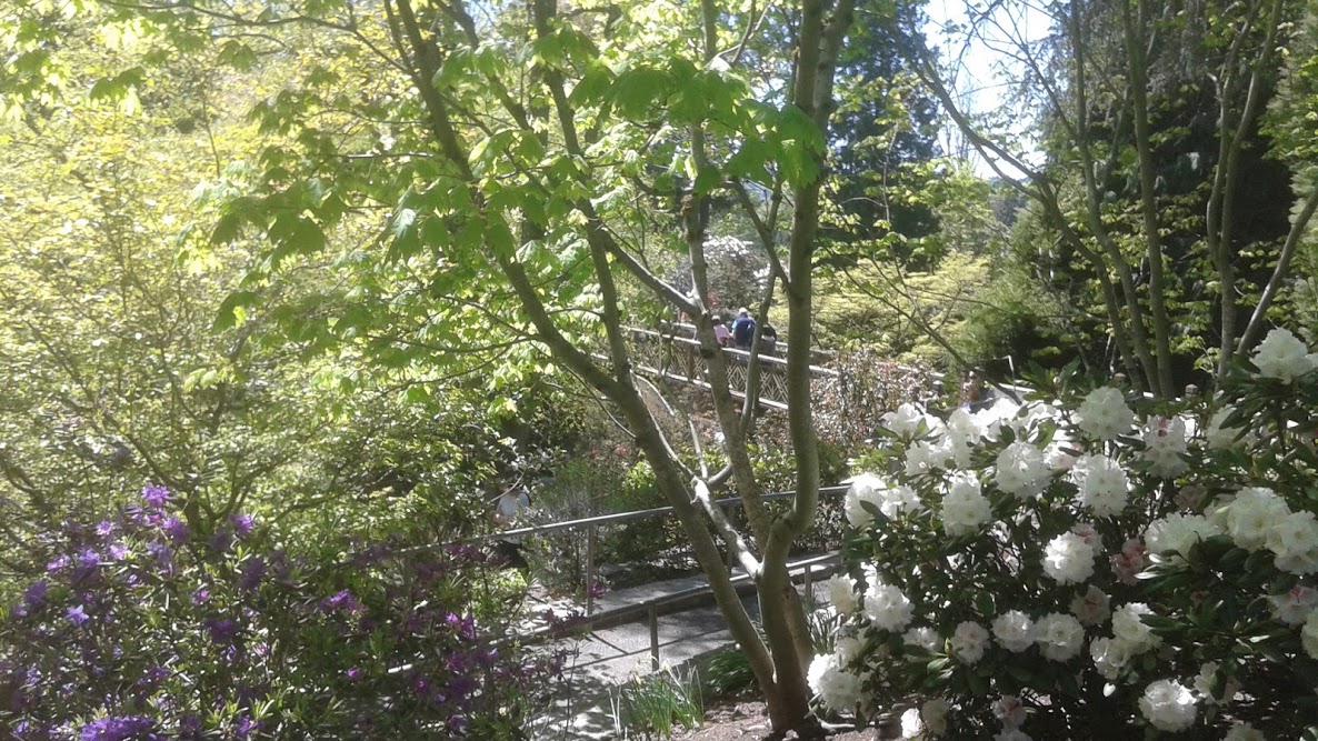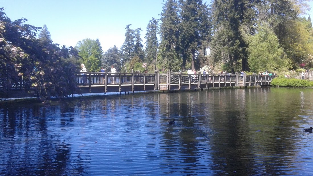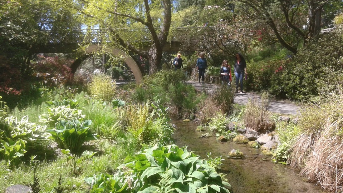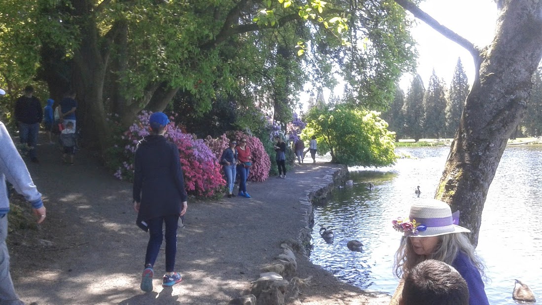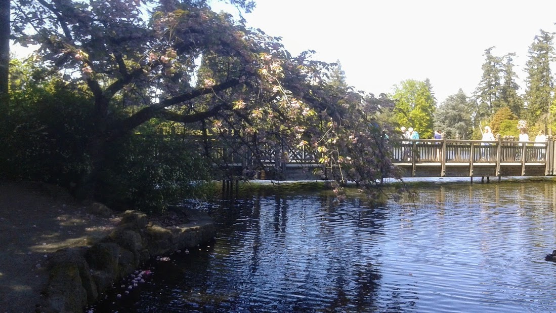 Every year the garden is filled with guests flocking to view the many blooming trees during Mother's Day weekend. Reed College across the street is overwhelmed with a parking nightmare. Come a week or two earlier, as we did, and the crowds are a bit less overbearing.