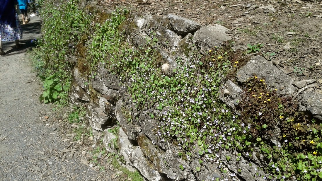 The ancient wall shows that it is very much in tune with the living nature in this way. I love seeing a rough wall made strong enough to overcome the heavy weight of the land behind it, while providing a home for well-contained weeds that become cascades of innocent little flowers.