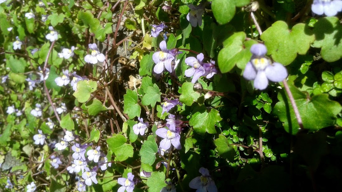 Above, these are the creeping-like vines that spread along the rock walls. They put on a nice display of flowers to soften up the rugged wall.