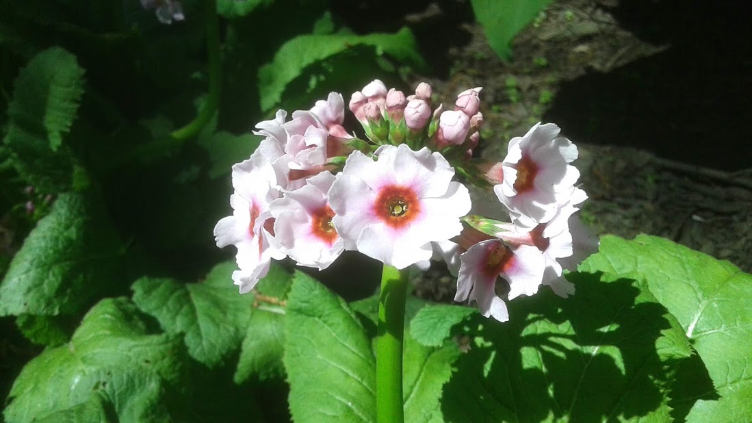 Most of the varieties I am not sure of the name or variety. This one looks like Berginia to me. They are known for the tightly clustered stems of candy colored flowers. White petals with pink and red centers make this flower unique variety from others in its family.