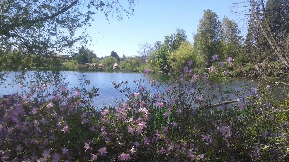 Enjoy scenic views from inside the Crystal Springs Rhododendron Garden in Portland, Oregon.