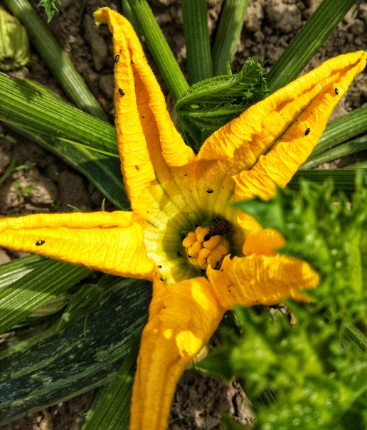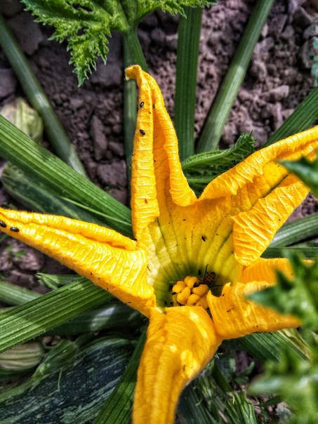 Blooming zucchiniekatirina (74)in #nature • 7 years ago I never thought that a zucchini has such big beautiful flowers! Something like a starfish and the color of the sun! They are very fond of bees! Then a green squash will grow from this flower, which is very tasty to fry with garlic ... #photography #life #photo #flowers