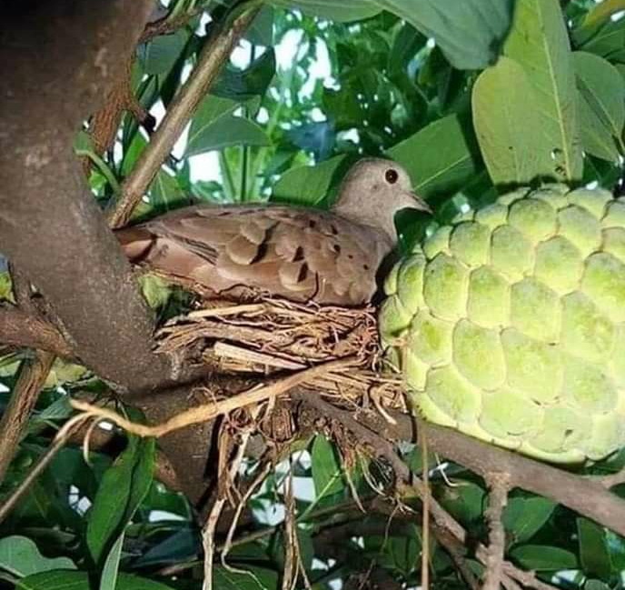 Está ave es su nido, en una mata de riñón muy cerca del fruto poniendo sus huevitos .