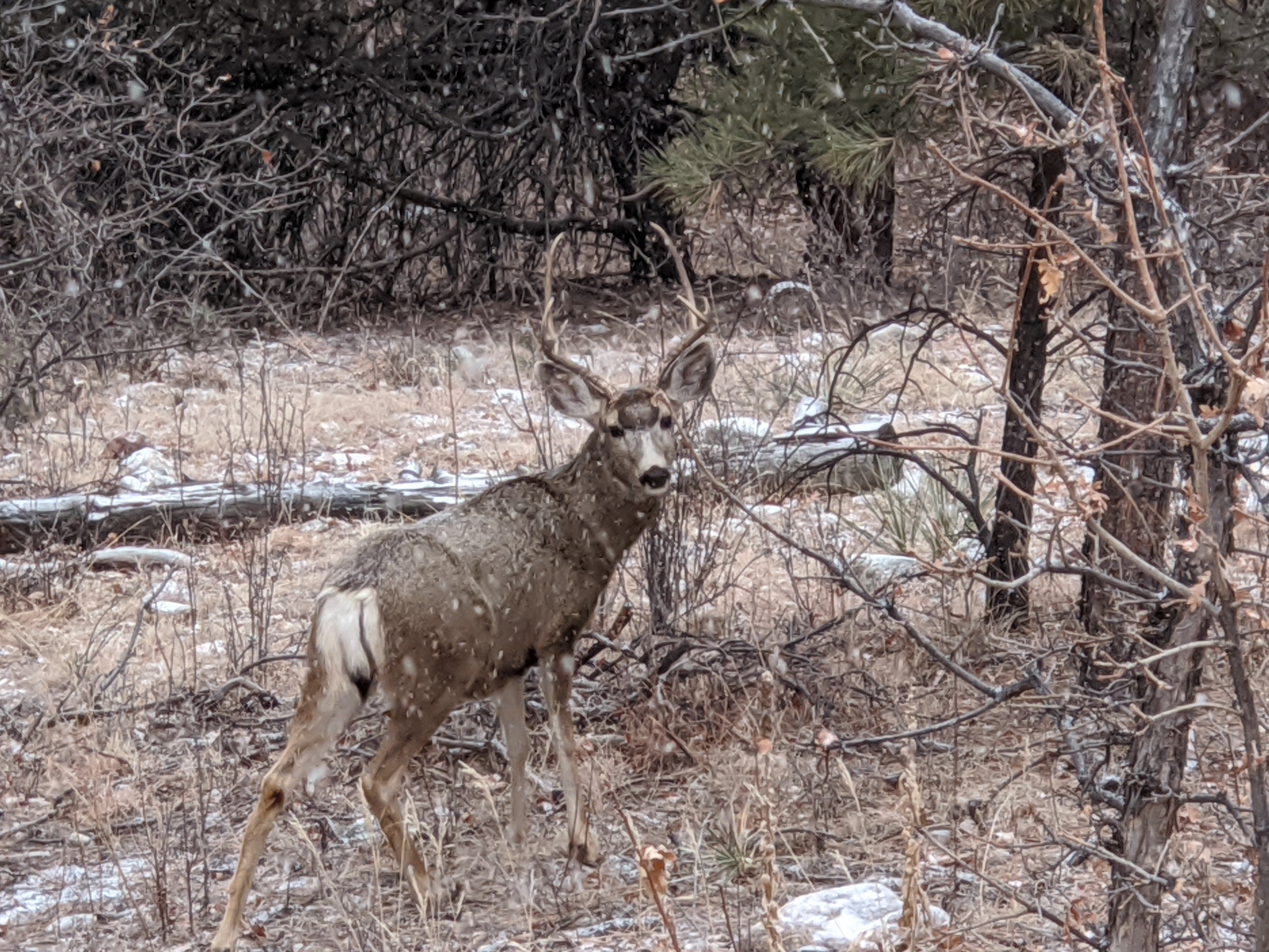 Almost 70 degrees yesterday, and now below 20 and 5 inches of snow on the way. Love the changes here in Colorado. Spotted this guy and friends out the back window looking for a place to shelter in from the storm. Never get tired of seeing them.