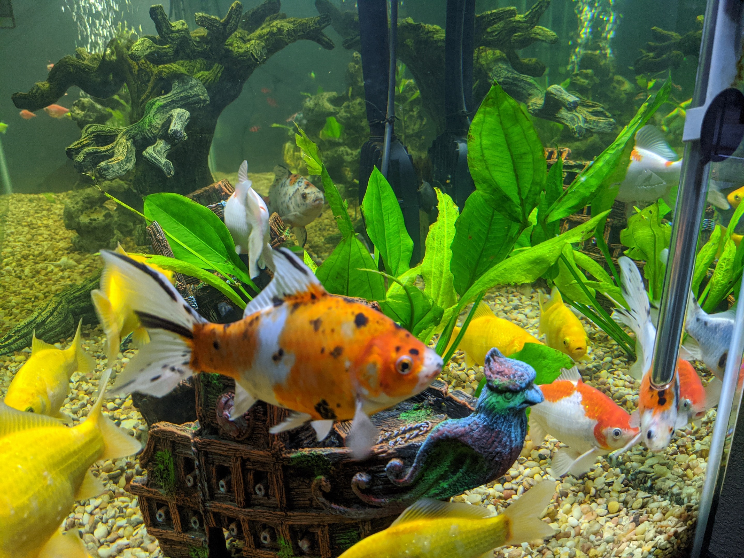 You keep the koi and goldfish in a separate tank from the others, right?