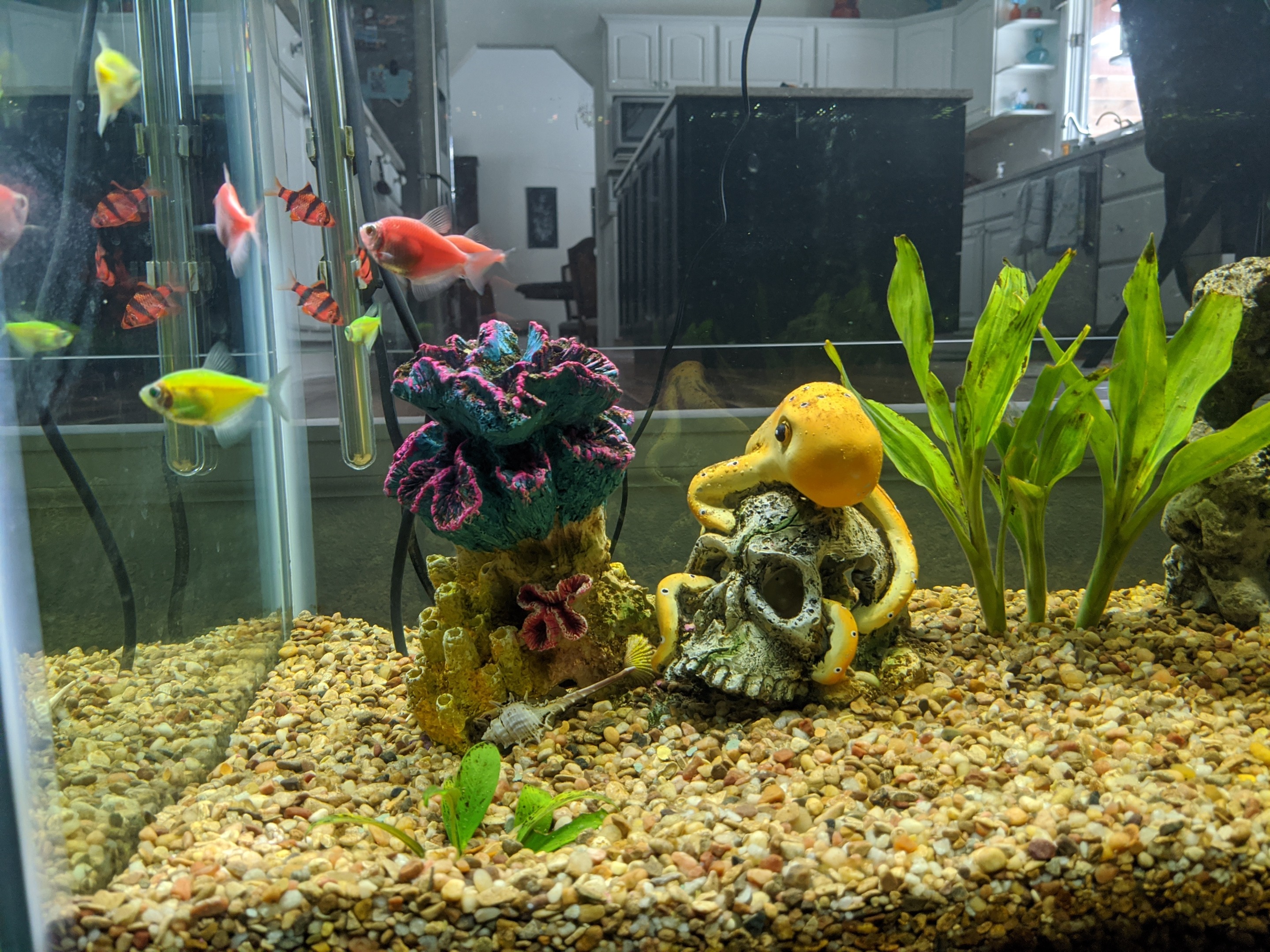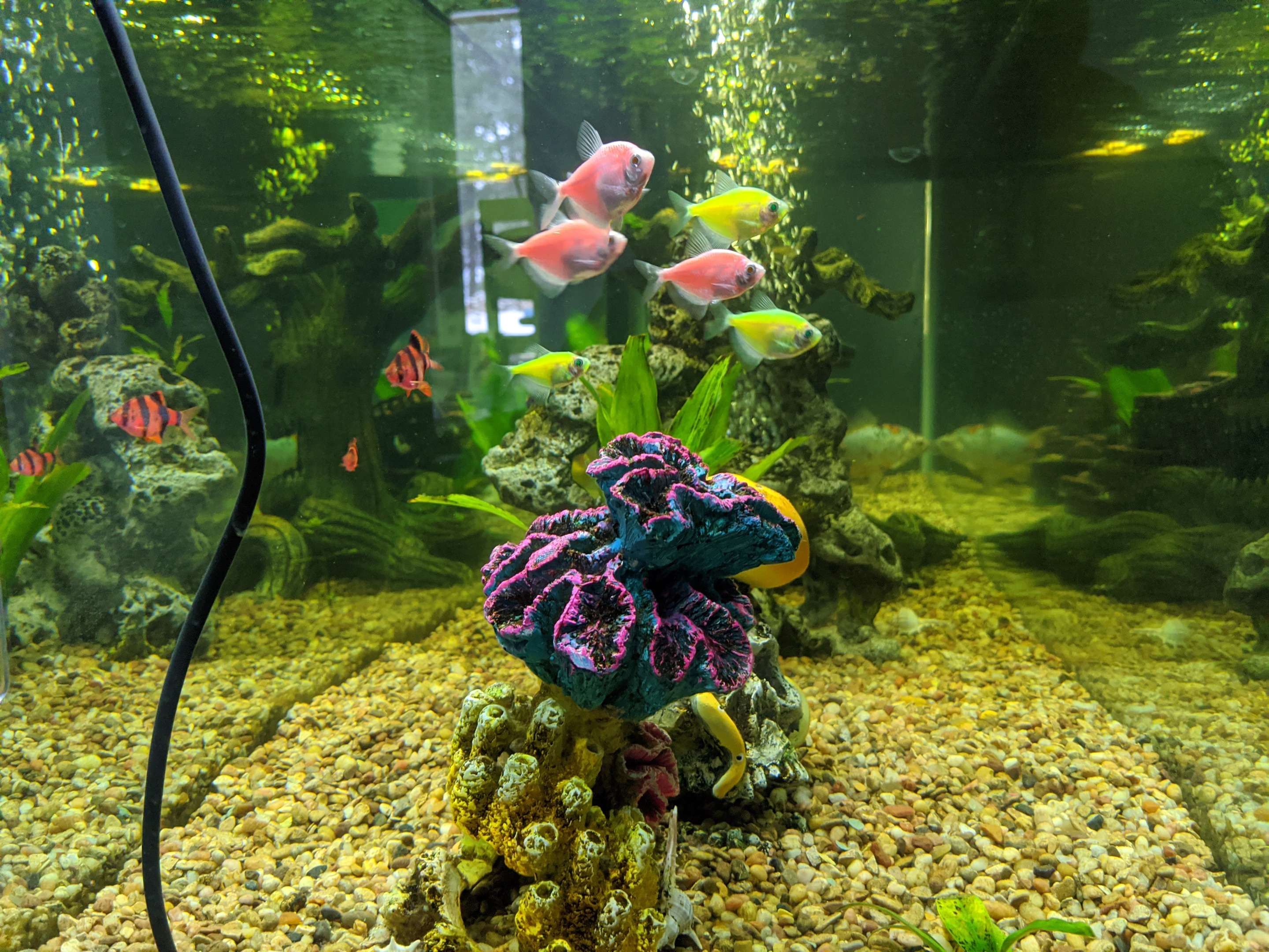 The glow fish and tiger barbs get along fine I gather? Their vibrant pops of color are very cool looking. Your aquariums look very well maintained🐟🌿🐠