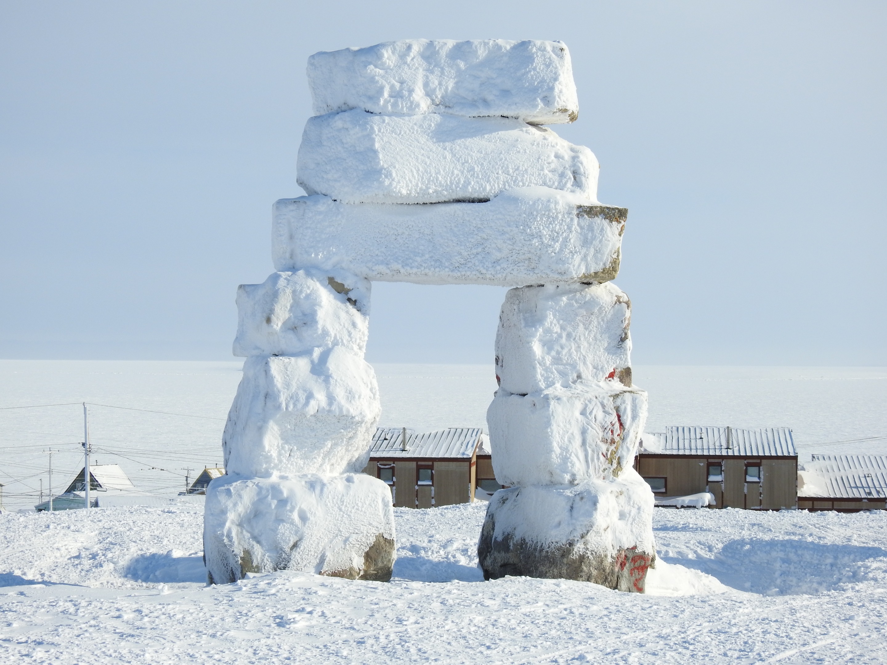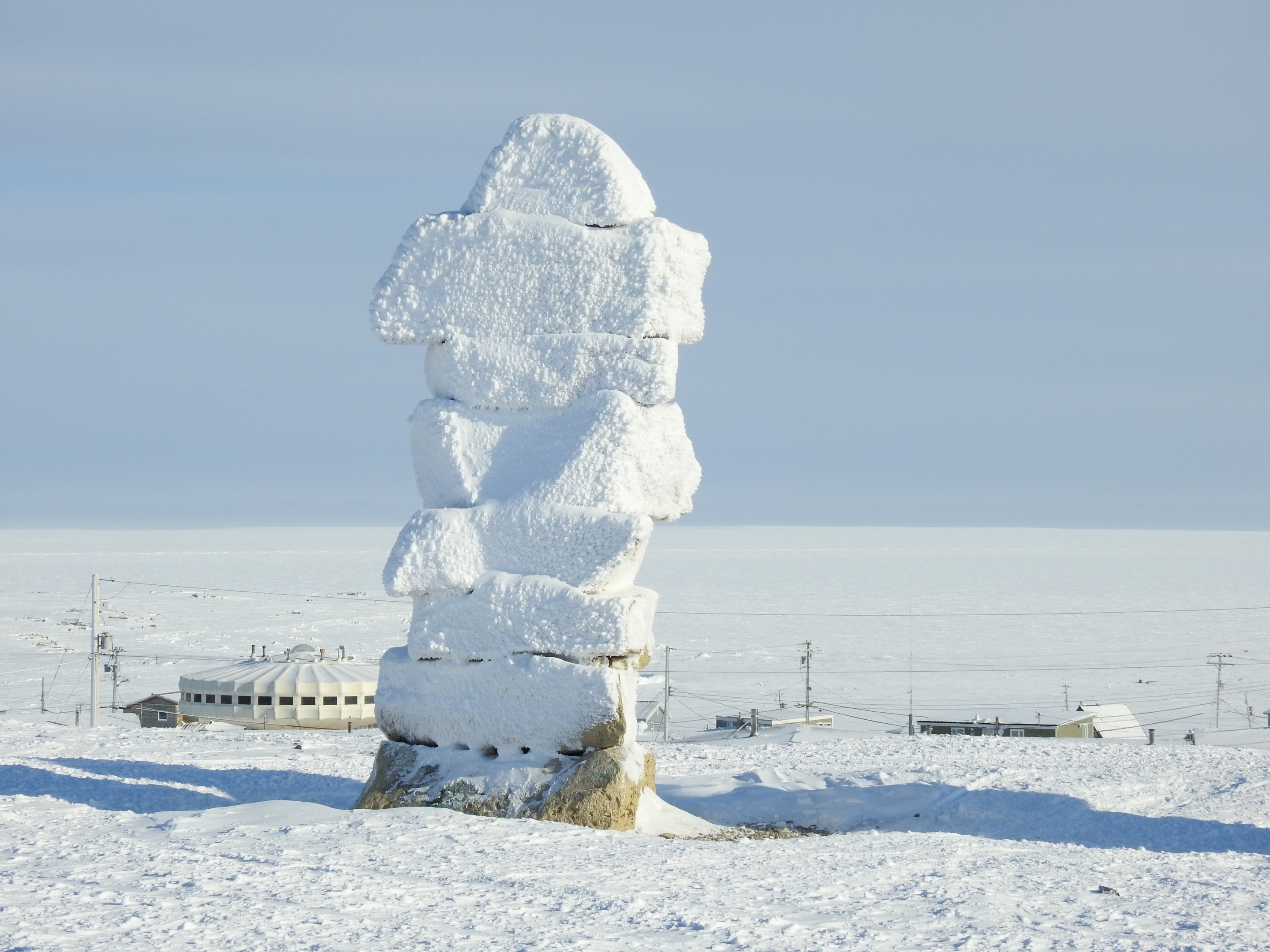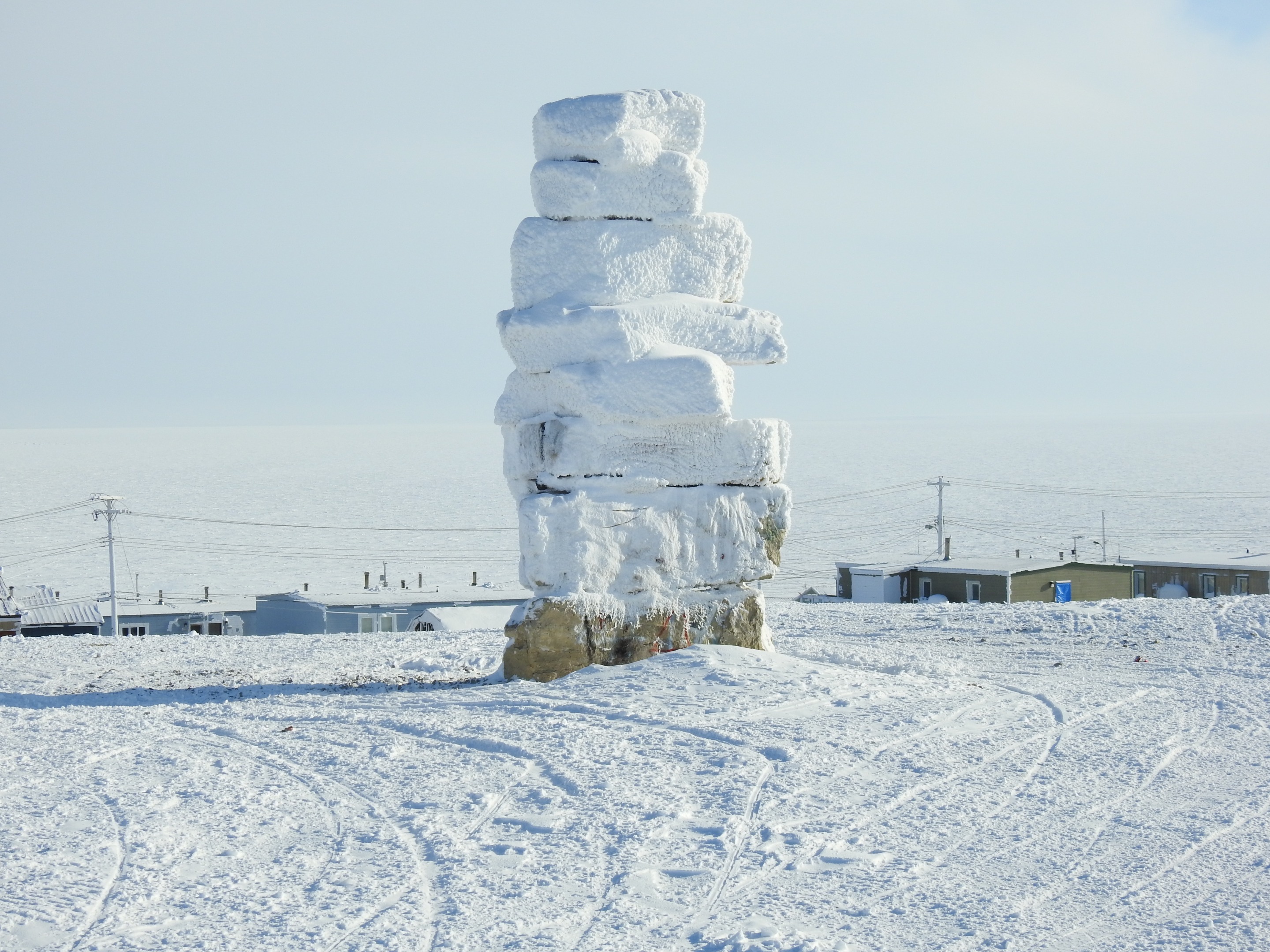 Inuksuit above the hamlet of Igloolik, Nunavut. (Inukshuks)