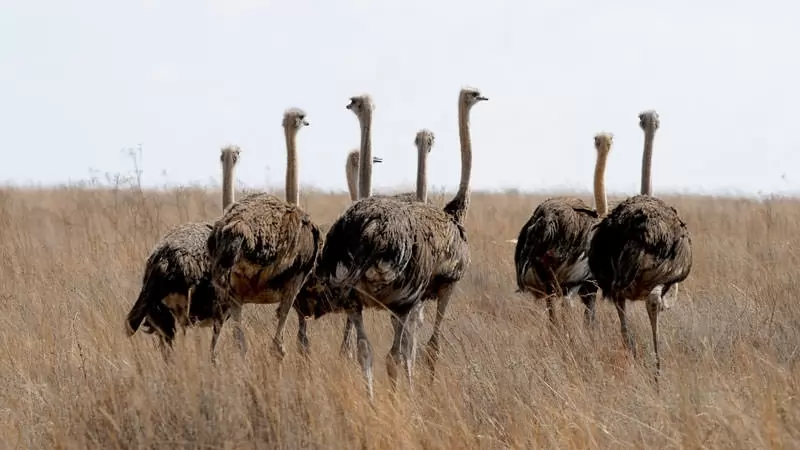 Ostriches mainly feed on seeds, shrubs, fruits, flowers and small insects. They also swallowed pebbles for grilling foods in gigerium. Interestingly, ostriches can hold up to 1.3 kilograms of pebbles and sand within their gigerium. Ostriches can also live without water for several days.