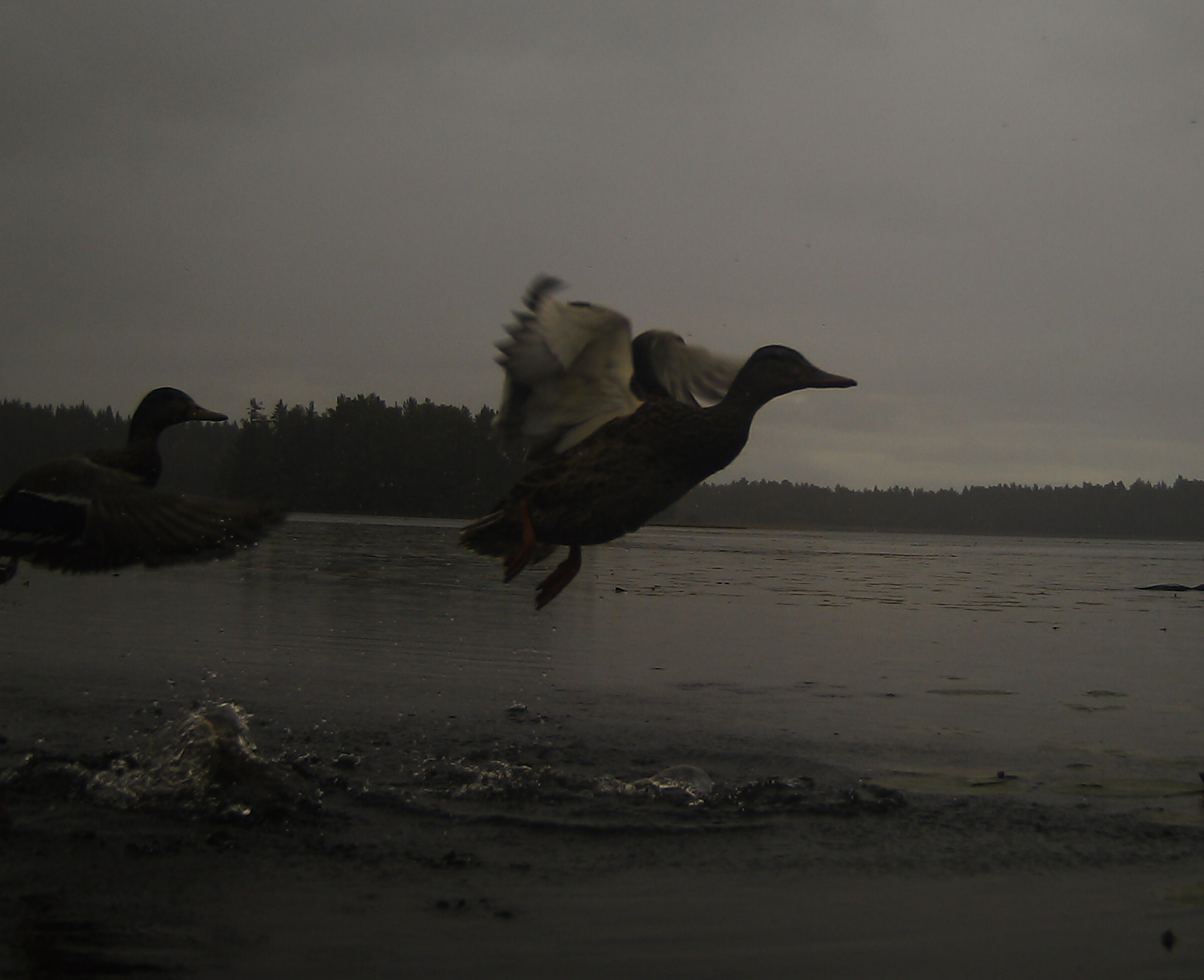 This is taken with trail camera and there are mallards taking of... For this camera was put on lake on self made stand just above water.