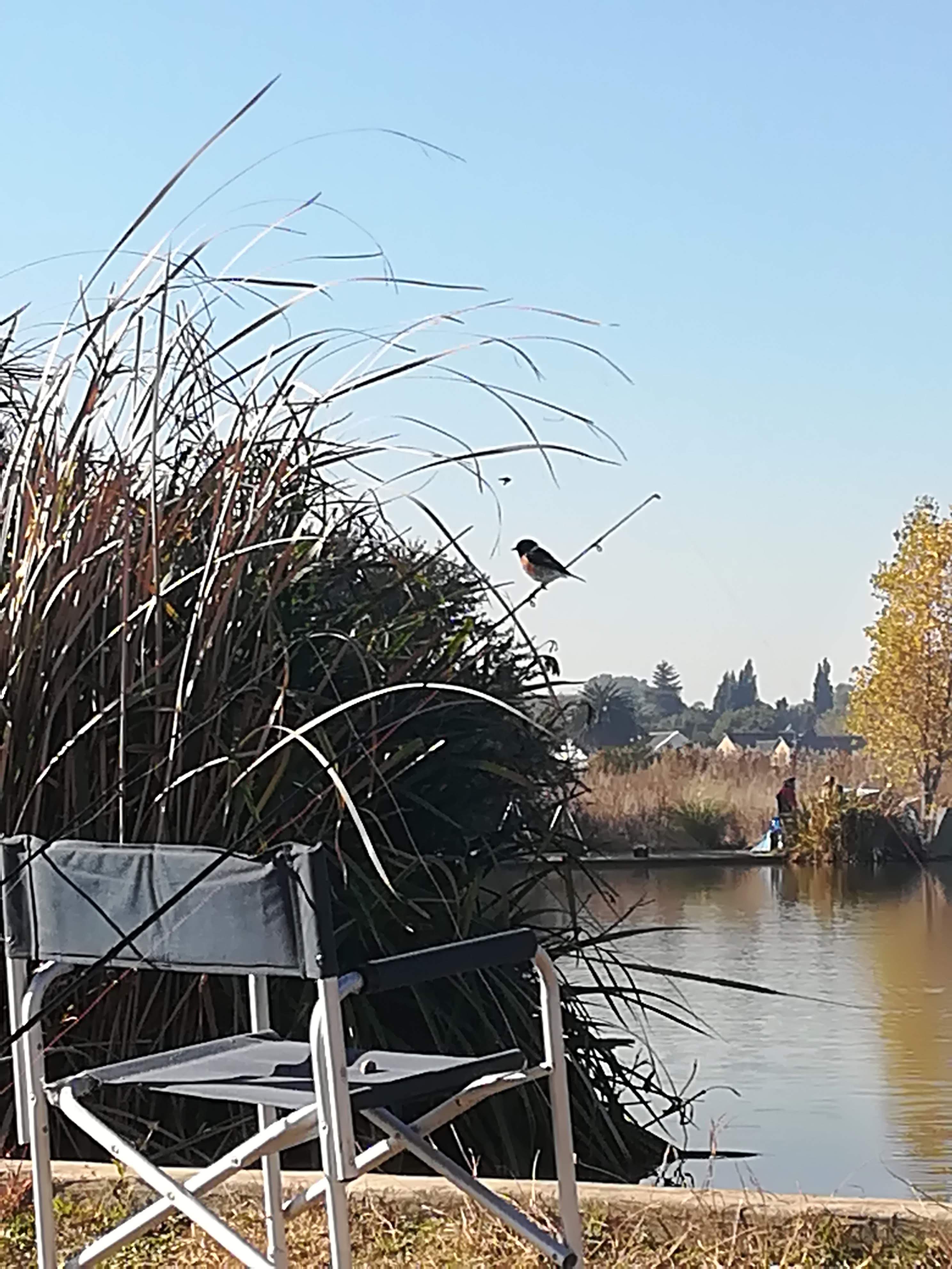 Winter mornings in South Africa, specifically on the Highveld are wonderful. Clear vivid blue skies, no rain in general. Sitting apart from the other groups of people I got to experience some alone time. Admiring the weather, the view, the environment. I was so quiet and still waiting and enjoying that I had visits from birds all around me. Doves, pigeons, Widow birds, Wydahs, Weavers etc. One was completely taken by my rods. Constantly popping around and landing on the rods and watching me.
