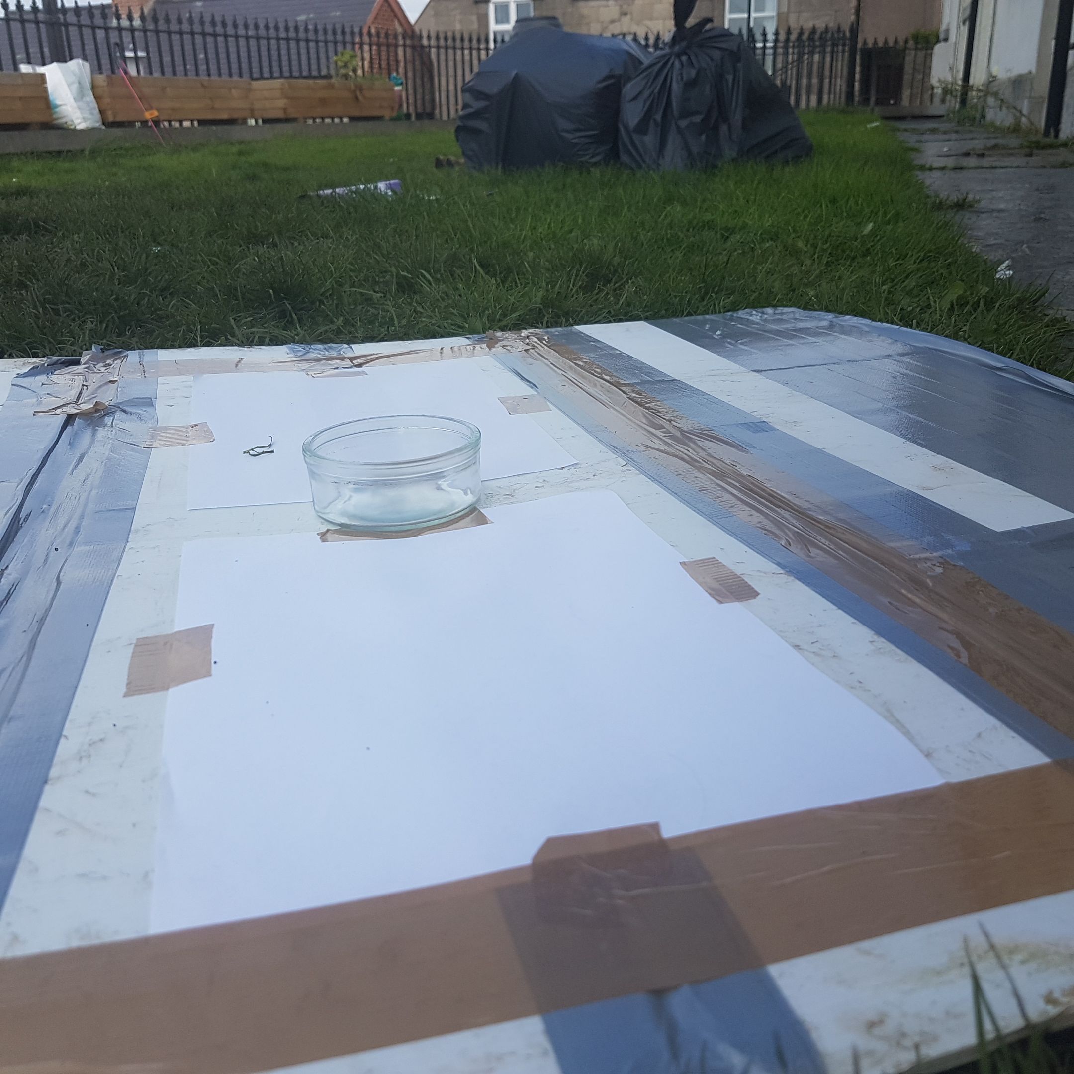 Then on the base panel tape down 2 sheets of A4 paper securely. Or use paper clips.