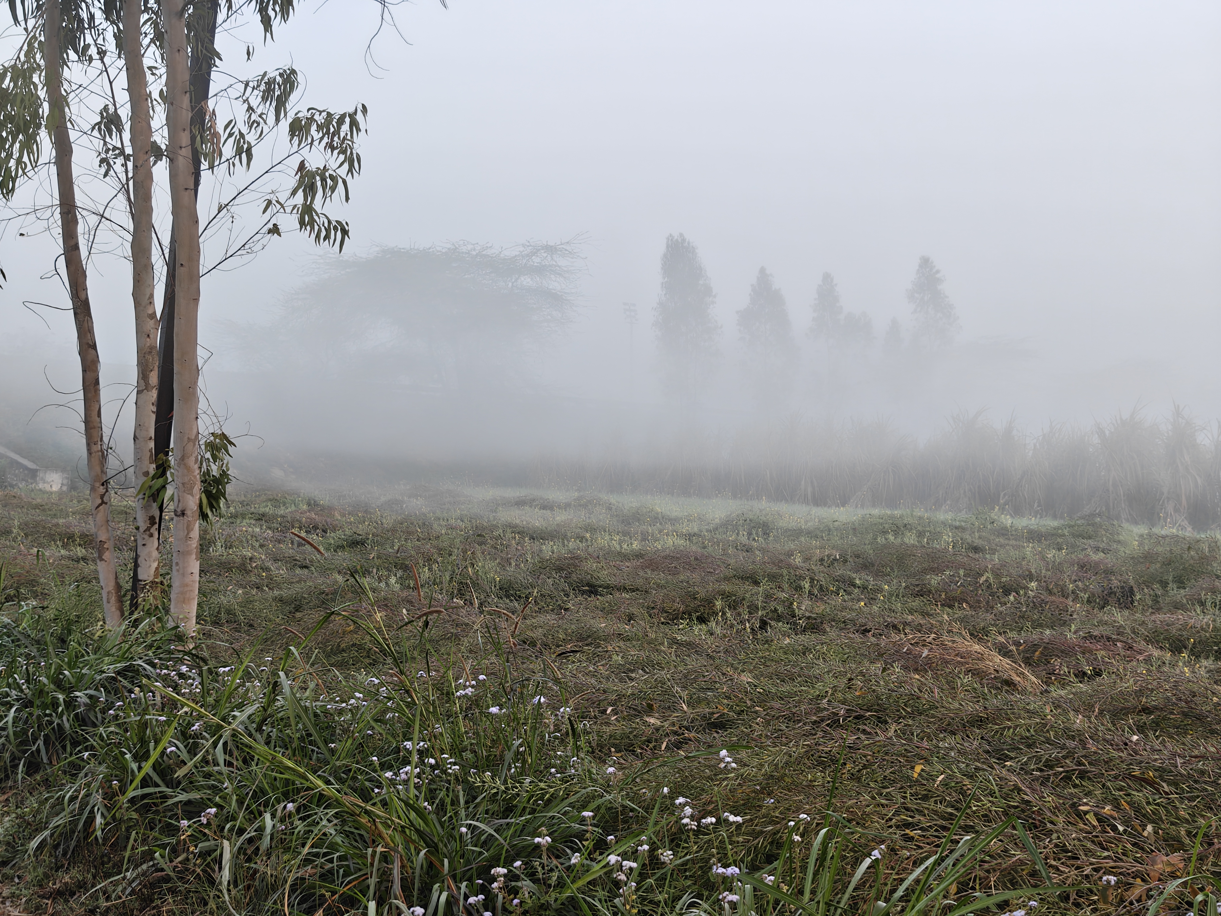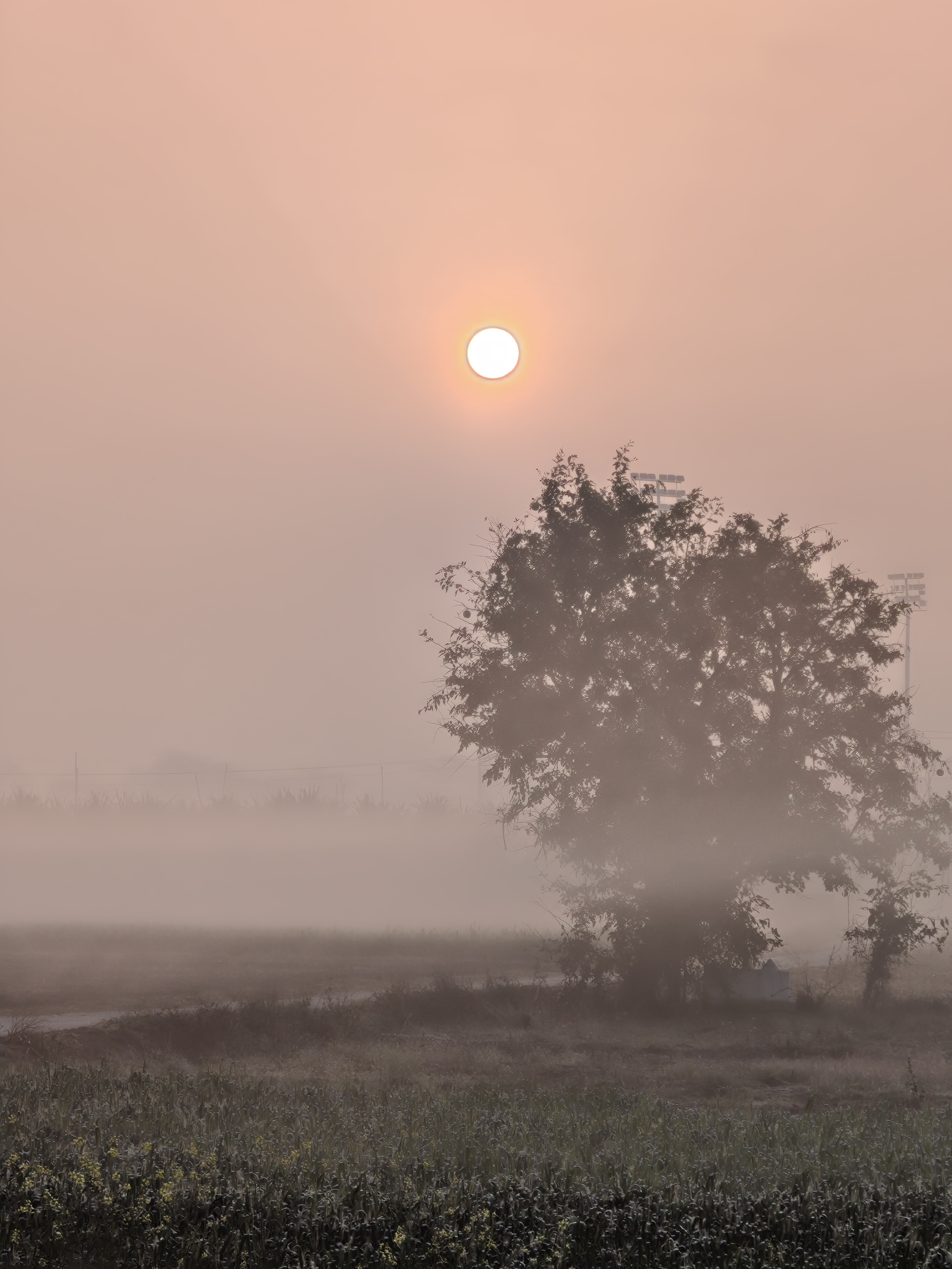 As time passes, the sun peeks out from a corner of the sky with its golden rays. Initially, the sun appears like a pale white sphere, its heat unable to penetrate the layer of fog. But gradually, the sun's intensity increases.