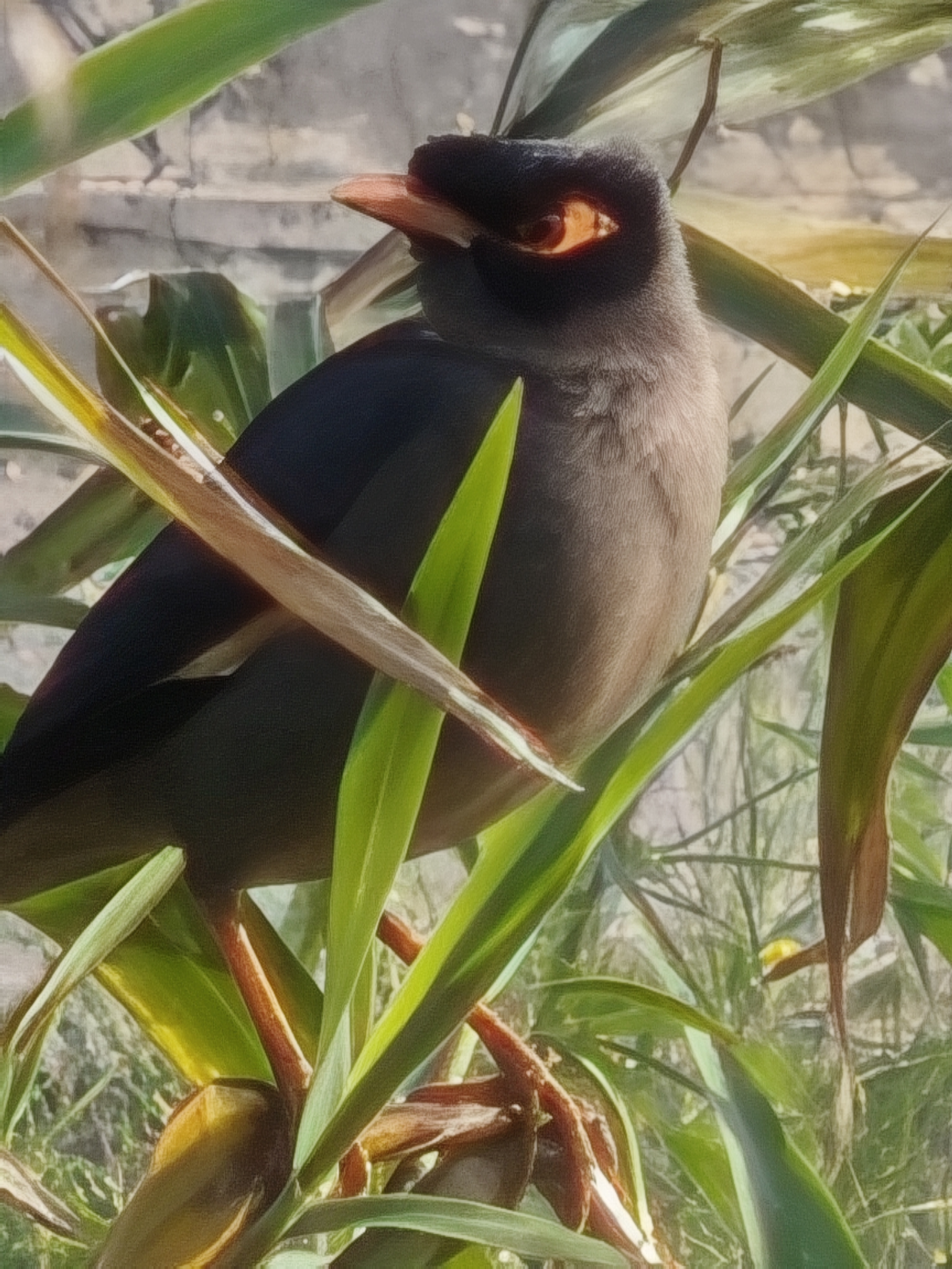 The myna is a vibrant part of the environment with only a simple bird.