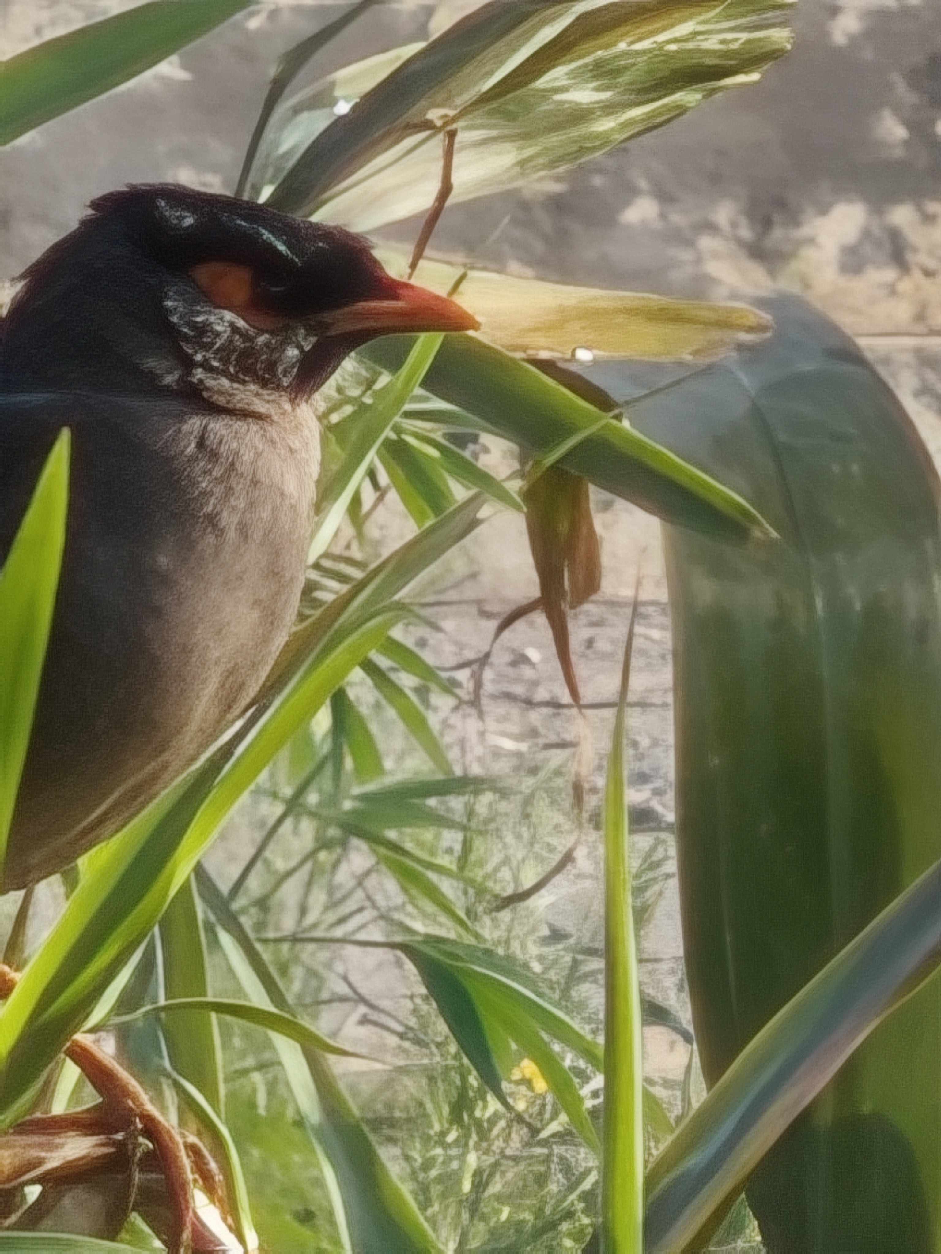 The myna is an omnivorous bird. It eats insects, fruits, grains, and even kitchen scraps with great relish. This bird is often seen in pairs or small groups. A distinctive feature of the myna is its love for living near humans. You can often see it in fields, gardens, rooftops, and even crowded railway stations.