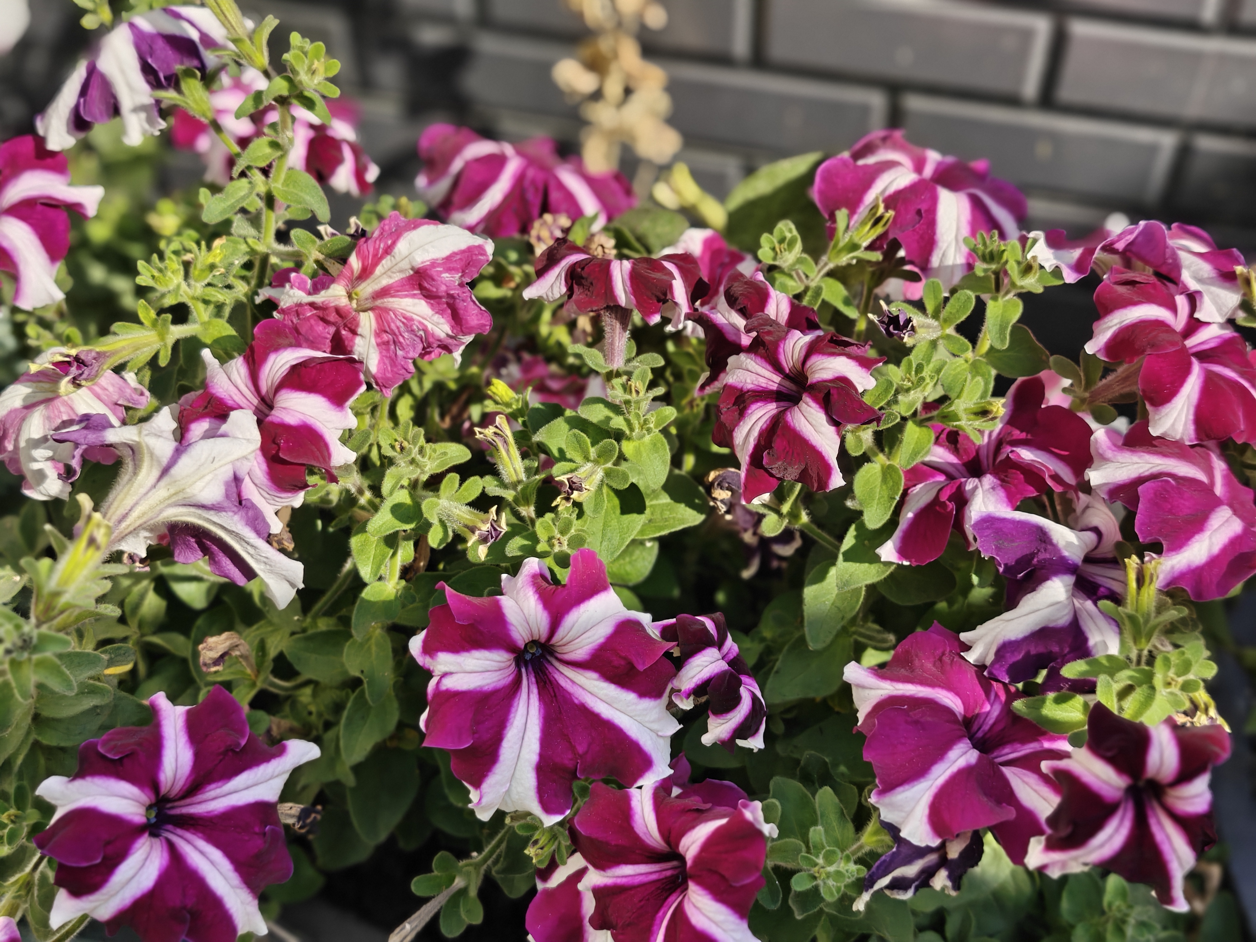 Petunias are a "sun-loving" plant. They require at least 5-6 hours of direct sunlight daily. The more sunlight, the more abundant the flowers will be. In less sunlight, the plant will simply spread its leaves and produce fewer flowers.