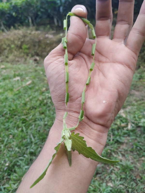 Visiting all around the garden I found a plant which reminded me some memories of my childhood days. I sat near that plant and strated making a necklace from the apex stem of the plant. We used to make many necklaces from that plant.