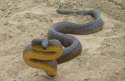 Like most everything else in Australia the tiger snake is incredibly dangerous painted up surprise surprise like a tiger with stripes running down its body.