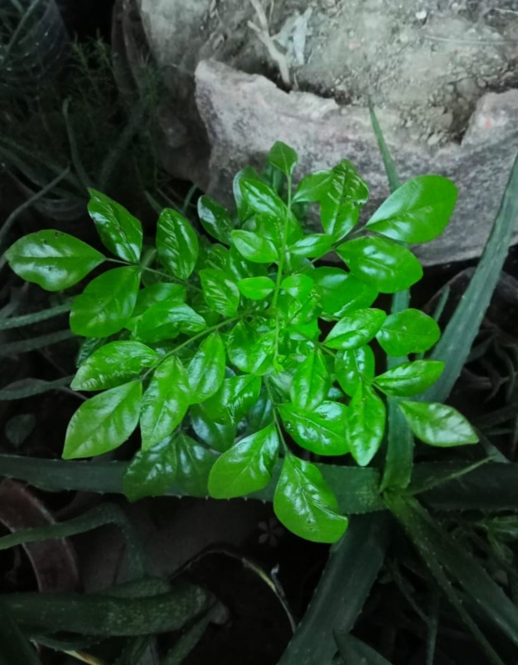 The name of this green tree is still unknown to me. One morning I woke up and saw a new sapling in our garden. I am thinking of a new flower tree and I am waiting for the flower bud to appear on the tree. However, disappointing me, I have not seen any flower in this tree yet.