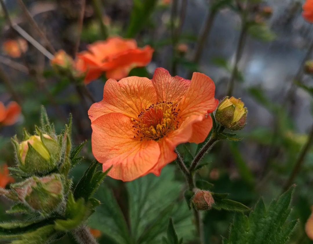 Hi friends.This is Geum coccineum flower.It is commonly referred to as the scarlet avens or bloody cranesbill is a member of the Rosaceae family.Native to the mountainous regions of Europe,this herbaceous perennial has found its way into gardens around the world due to its breathtaking appearance.The plant features a basal rosette of deeply lobed,hairy leaves with a height ranging from 12 to 24 inches.Its erect stems rise above the foliage,bearing singular,cup-shaped flowers with five vivid petals.The petals come in shades of fiery red,scarlet and occasionally orange,creating a fiery burst of color in any garden bed or border.The blooms typically appear in late spring or early summer, and their charming presence continues to grace the garden for several weeks.
