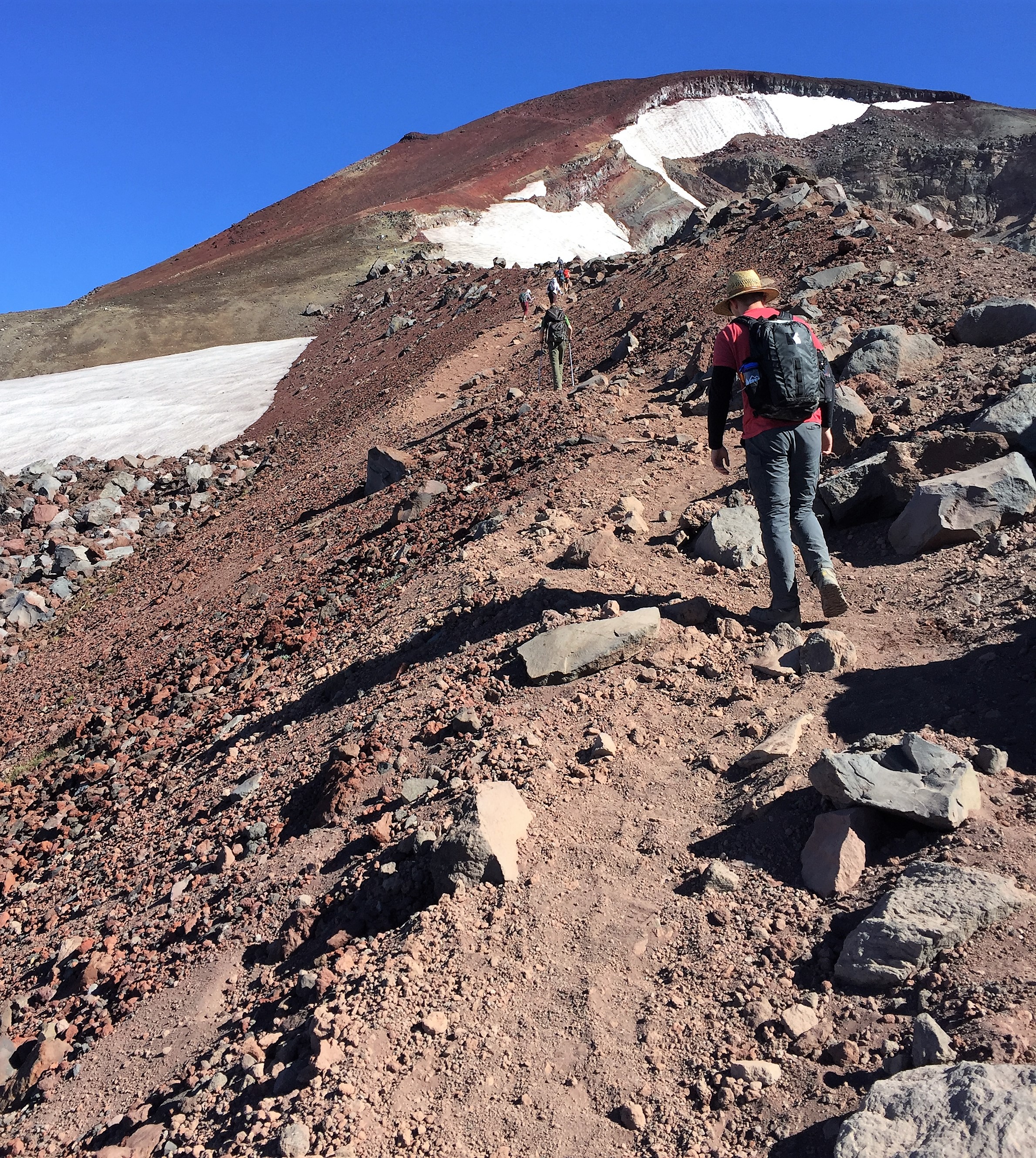 We hit the trail around 0530 after a questionable night of sleep; Pro Tip: Don't forget your sleeping bag while camping in the desert. I recall talking to someone on the summit who mentioned that this mountain contained the largest glacier in the United States...not sure if that's true or not...Side note: Don't you love how nice people are on the trail?
