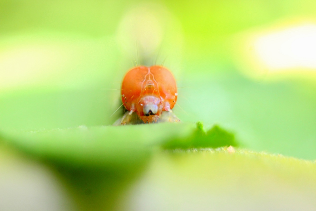 WOW! That is impressive to see so close caterpillar, its eyes are looking like there is no iris and they are blind :)