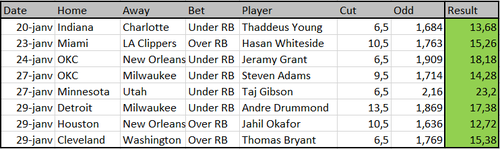 You can find the detail of each bet in my daily posts or in my weekly report. This month end in the positive even with a bad start, with a 5.21% ROI which is quite satisfying to start 2019.