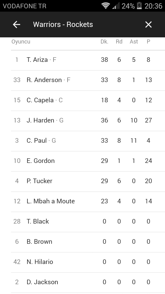 Rockets oyuncularının istatiskleri: