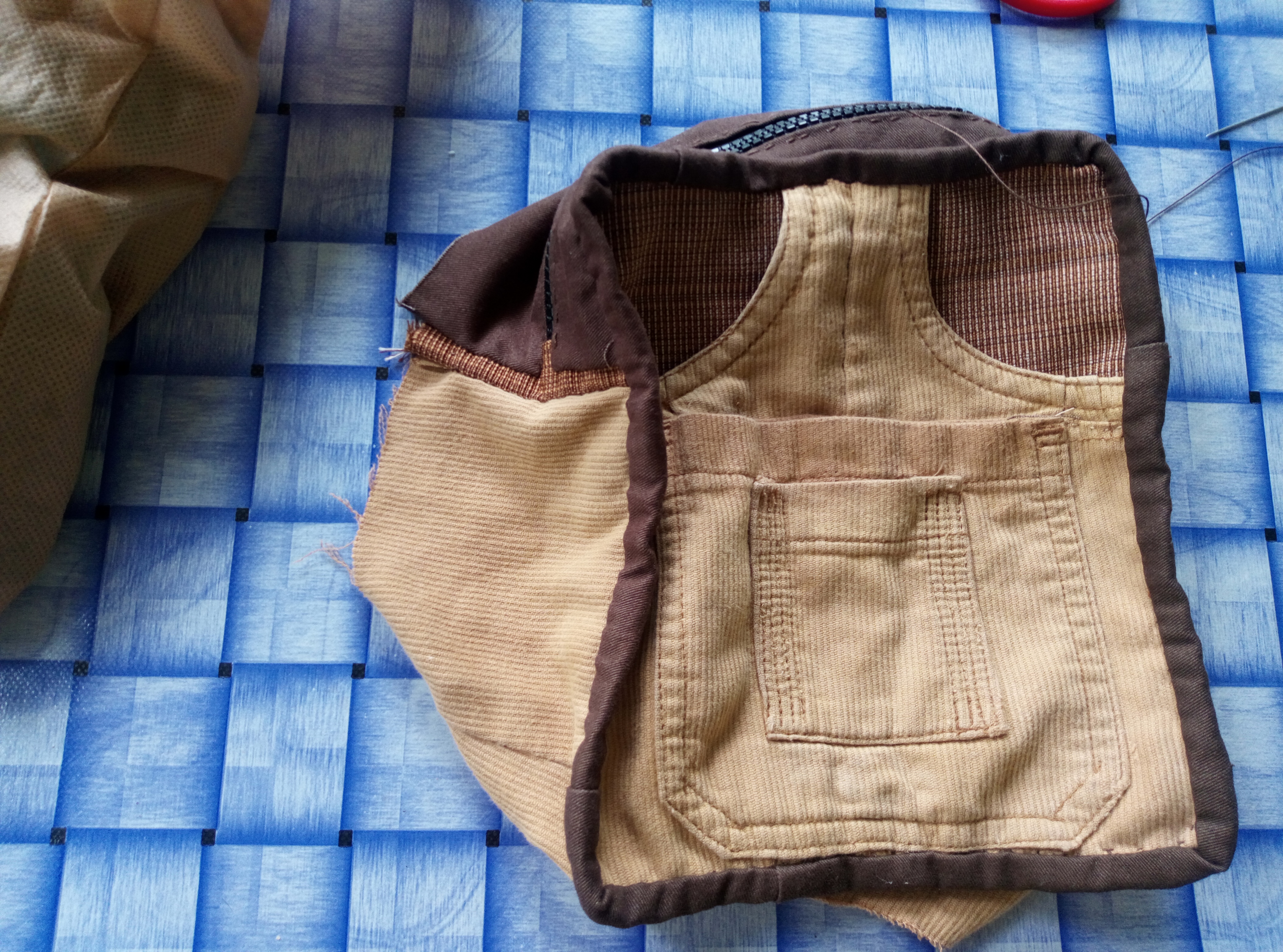 Added cocoa brown fabric for additional pocket.