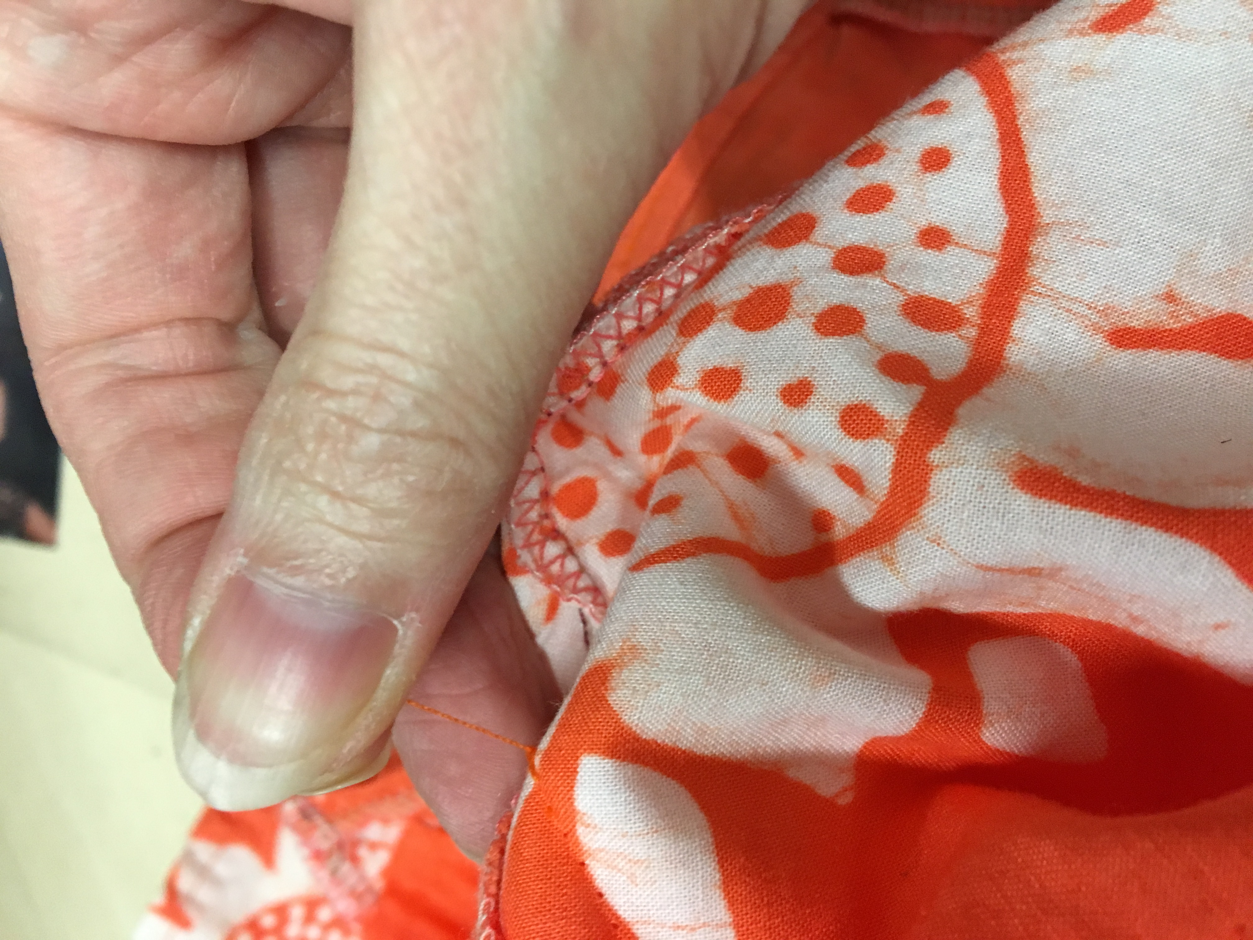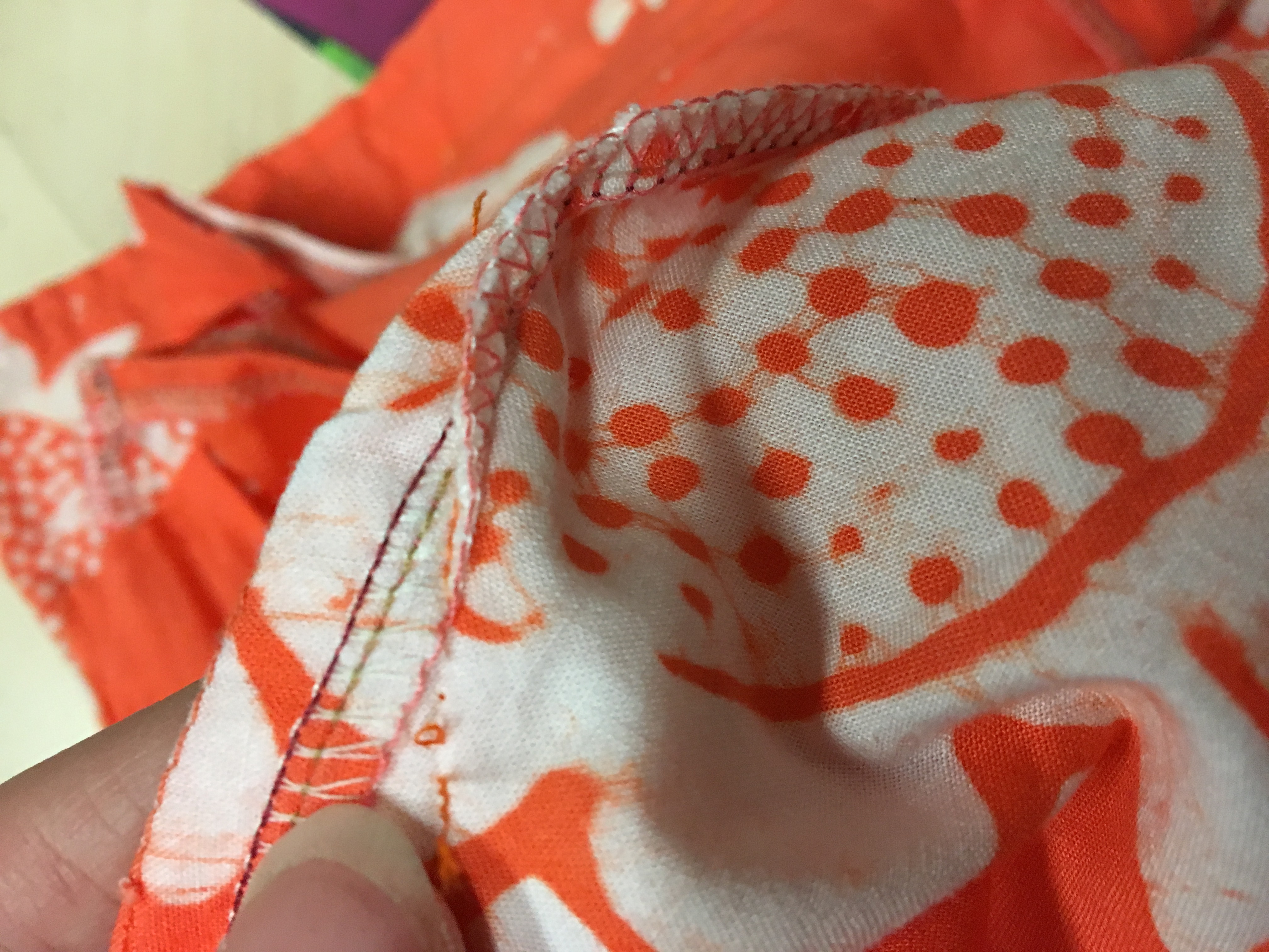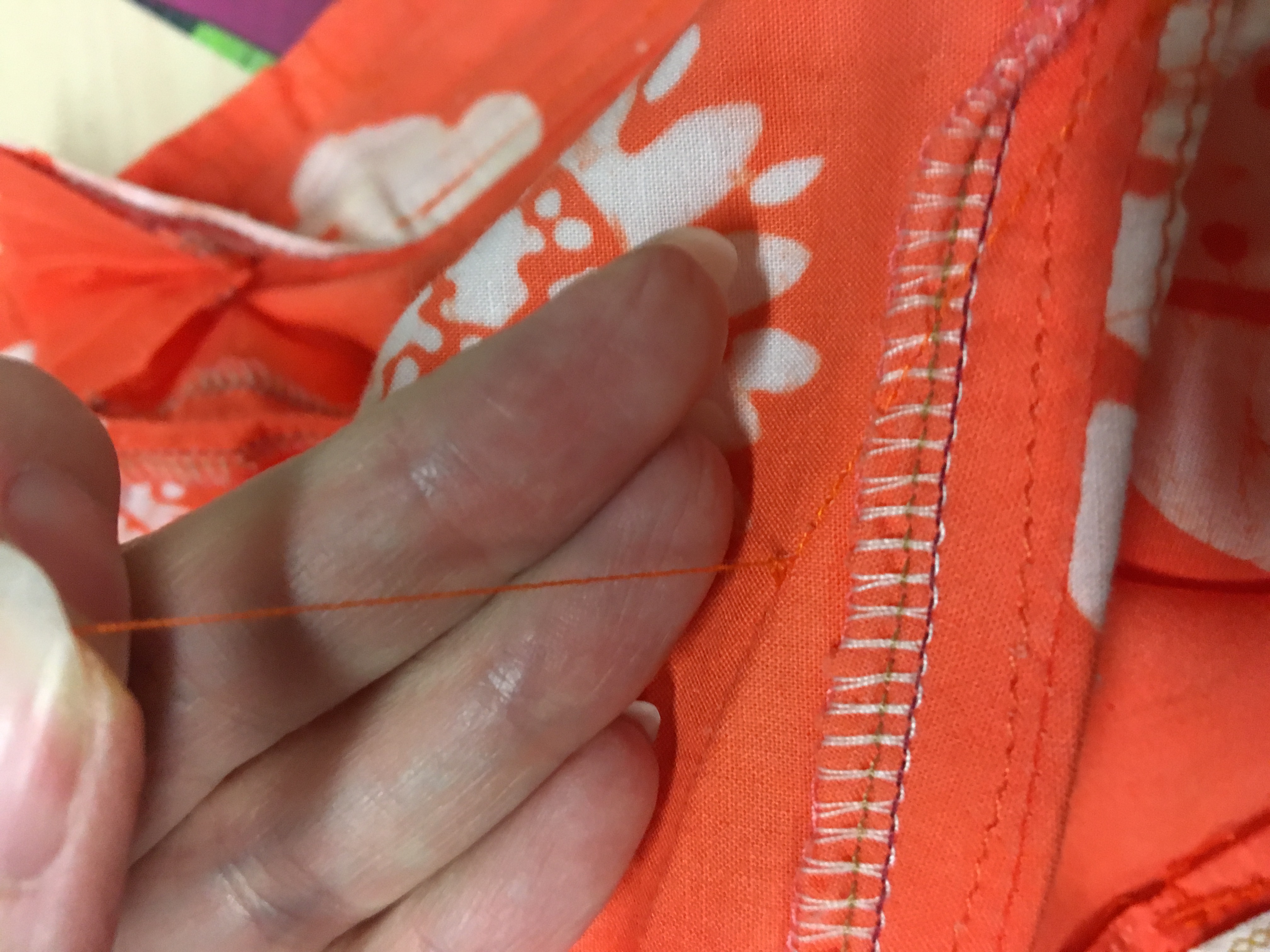 Here is a pictorial of how to quickly pull those threads. Comes in handy when ripping hems. First pop a couple stitches with your handy-dandy seam ripper, then pull on the other side. Break the thread and pull.