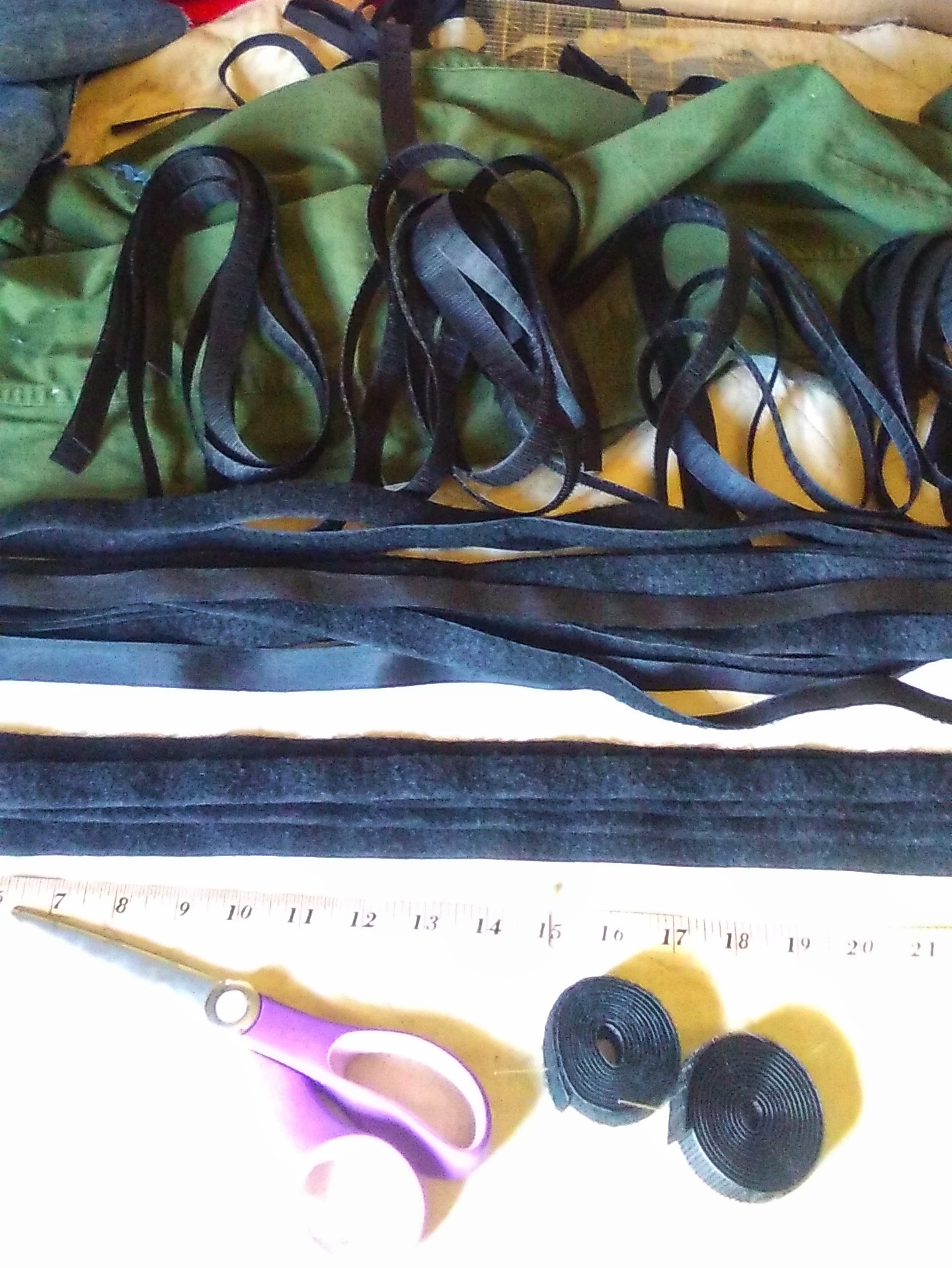 Once the velcro pieces were lined up and secured with excessive pins, I secured these pieces by running a double stitch holding them in place.