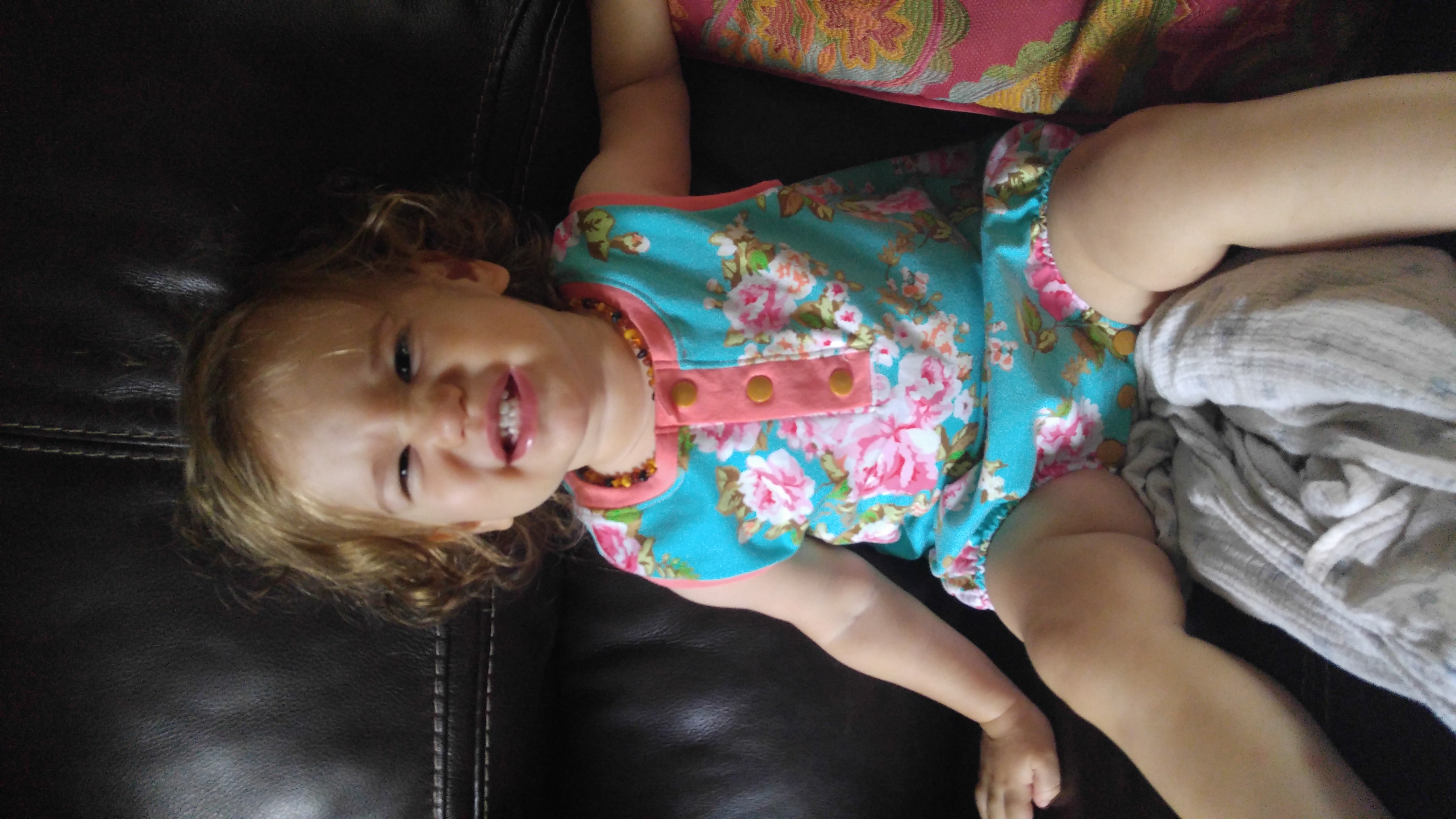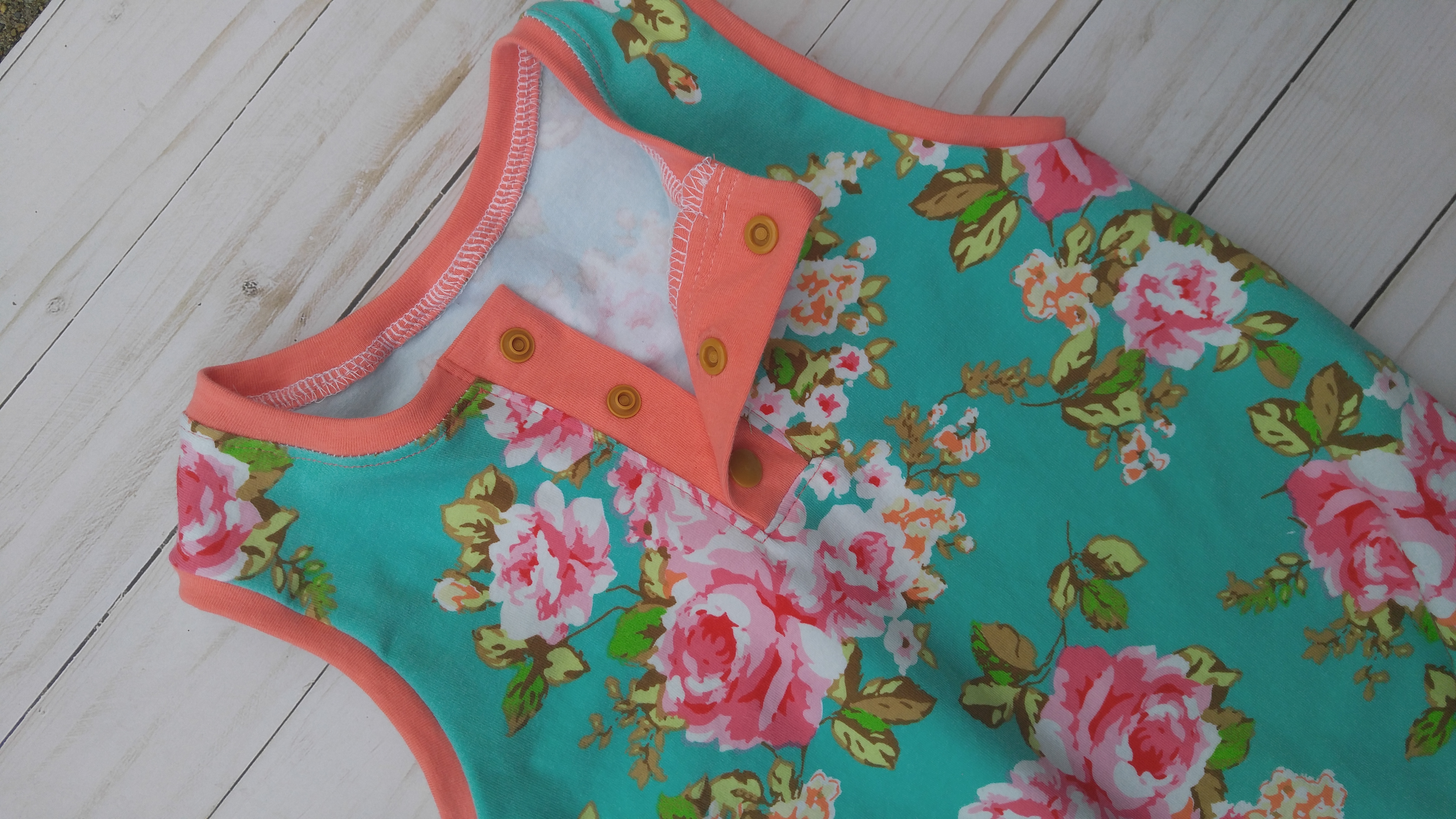 That romper is adorable. I love the shape at the back, I think it is nice a little looser (and definitely practical for diapers 😉). The material is also one of my favourite colours.