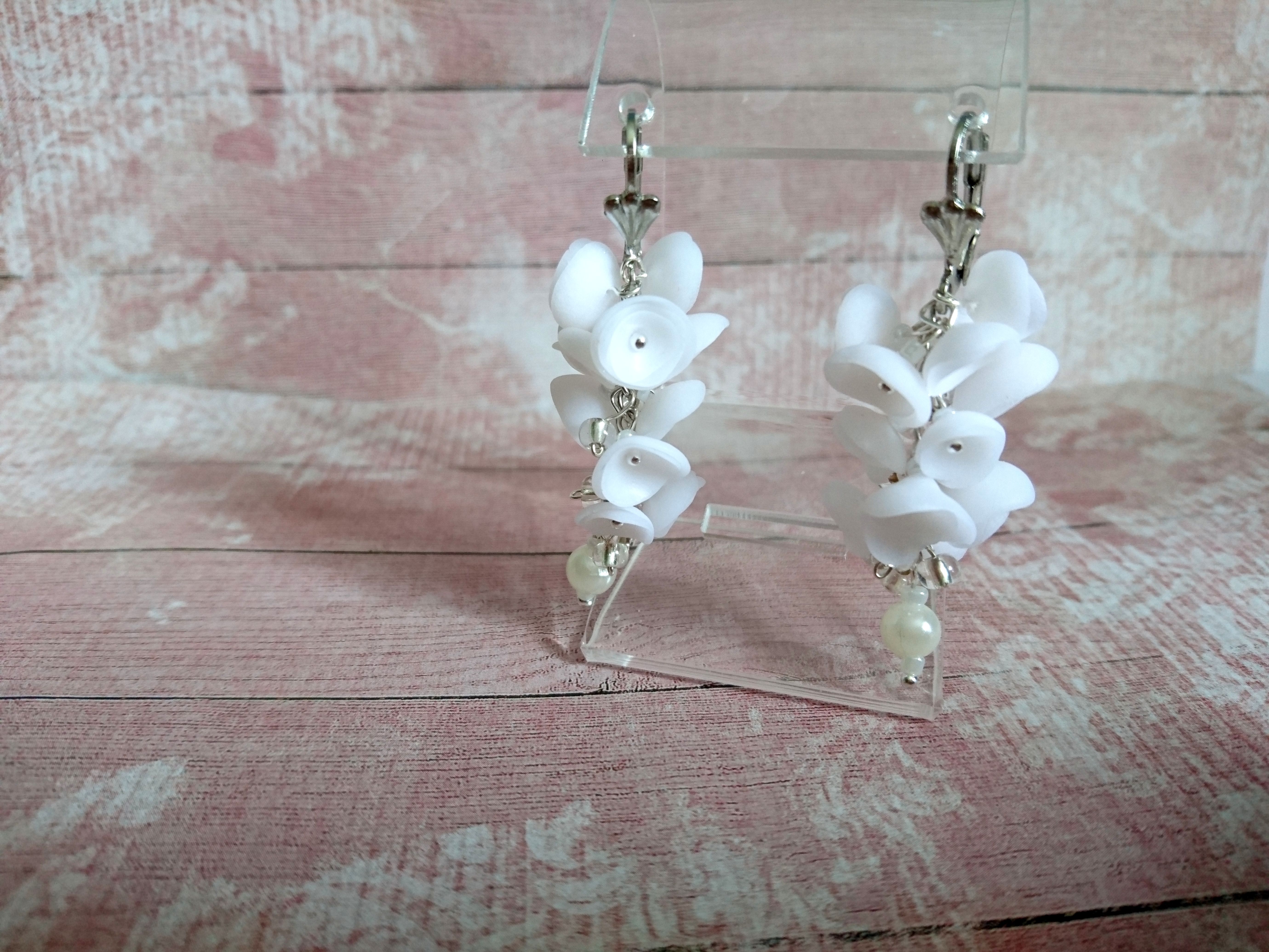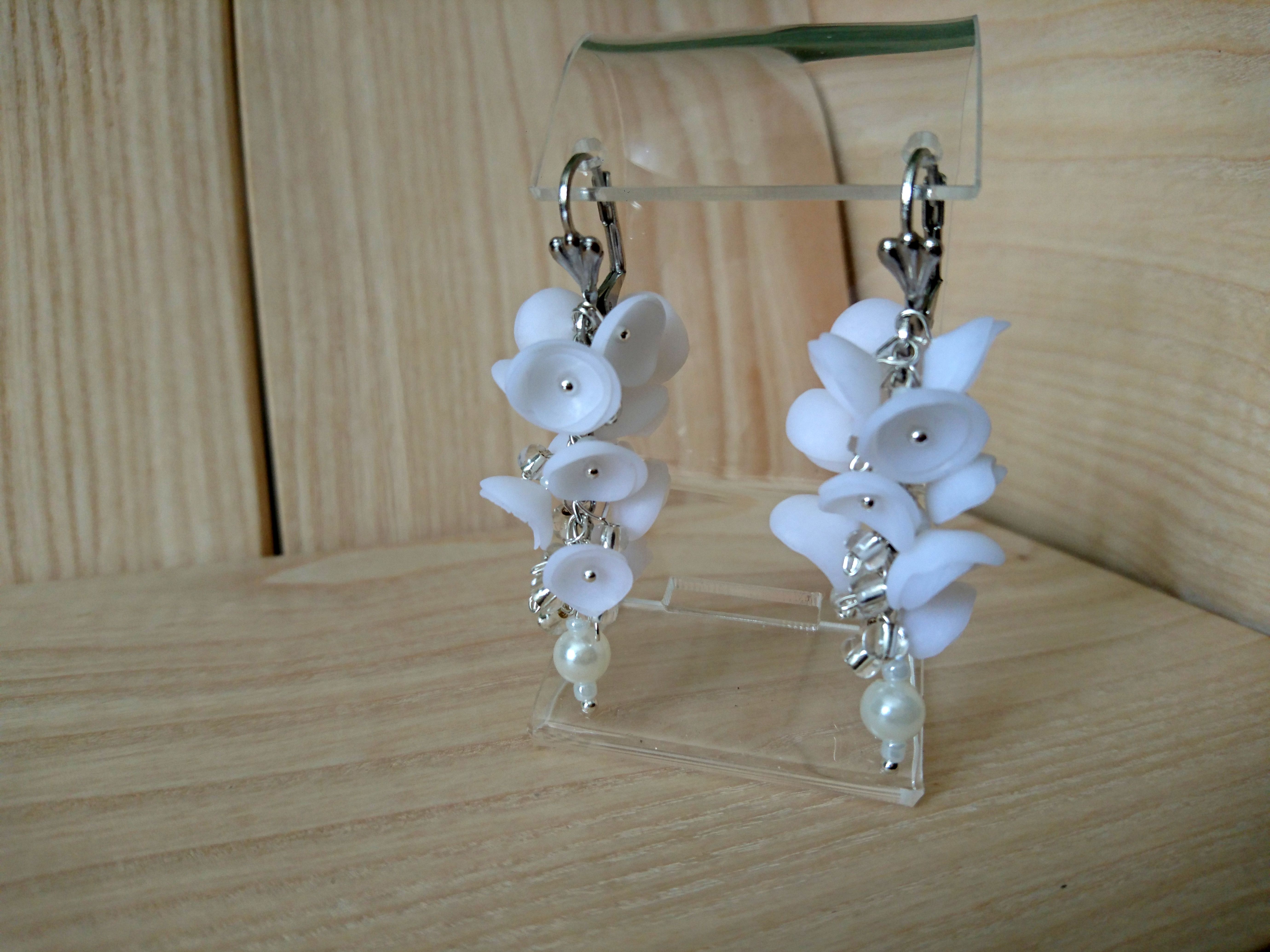 I want to show you the earrings that I made for a lovely bride named Natalie. She asked me to make polymer clay wedding decorations for her. In the beginning, she wanted rose earrings. But I wanted to do something very gentle, unusual and unique for her. I thought for a long time and went over in my mind the options for models of earrings. I realized that roses are good, but something more interesting can be done.