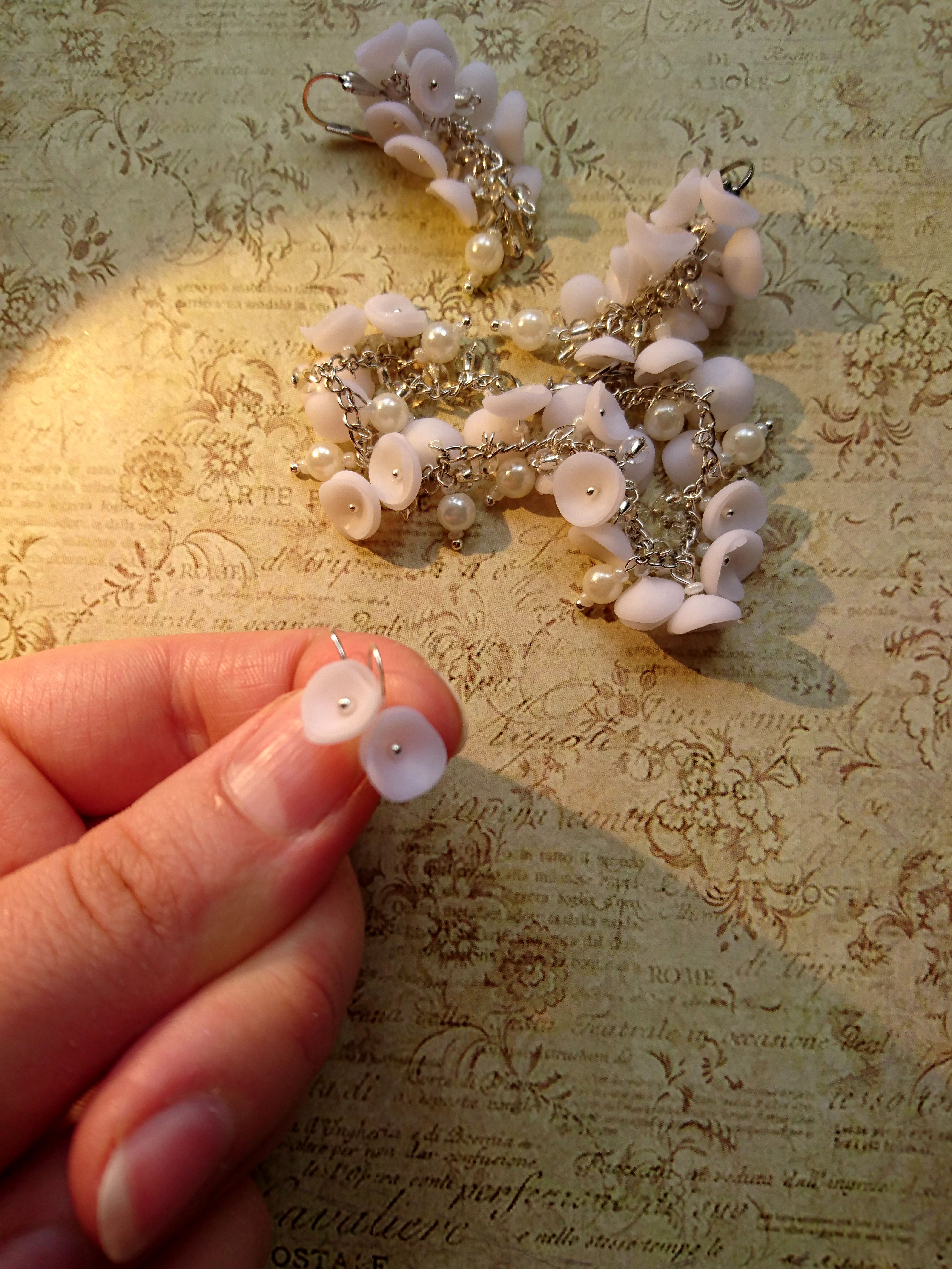 Хочу показать вам серьги, которые сделала для милой невесты по имени Натали. Она попросила меня сделать для нее свадебные украшения из полимерной глины. Вначале она хотела серьги в виде роз. Но мне захотелось сделать для нее что-то очень нежное, необычное и уникальное. Я долго думала и перебирала в уме варианты моделей серег. Поняла, что розы - это хорошо, но можно сделать что-то более интересное.