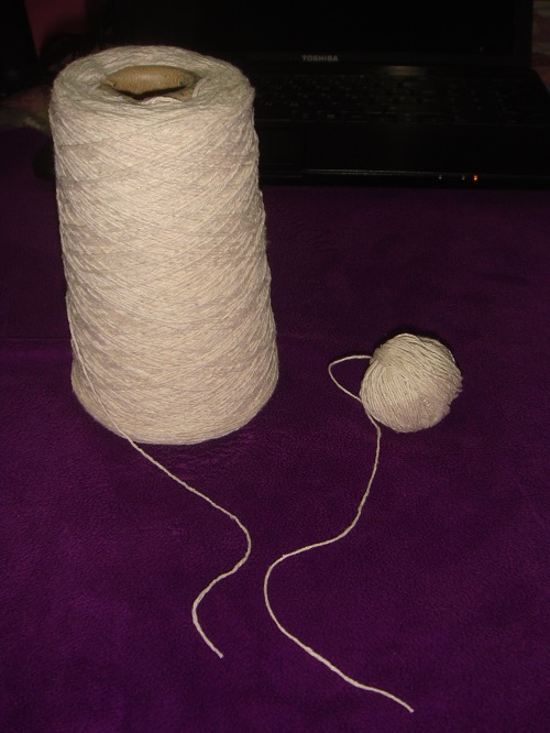 1- Start with a ch of 140. Close with a sl. Knit with double yarn.