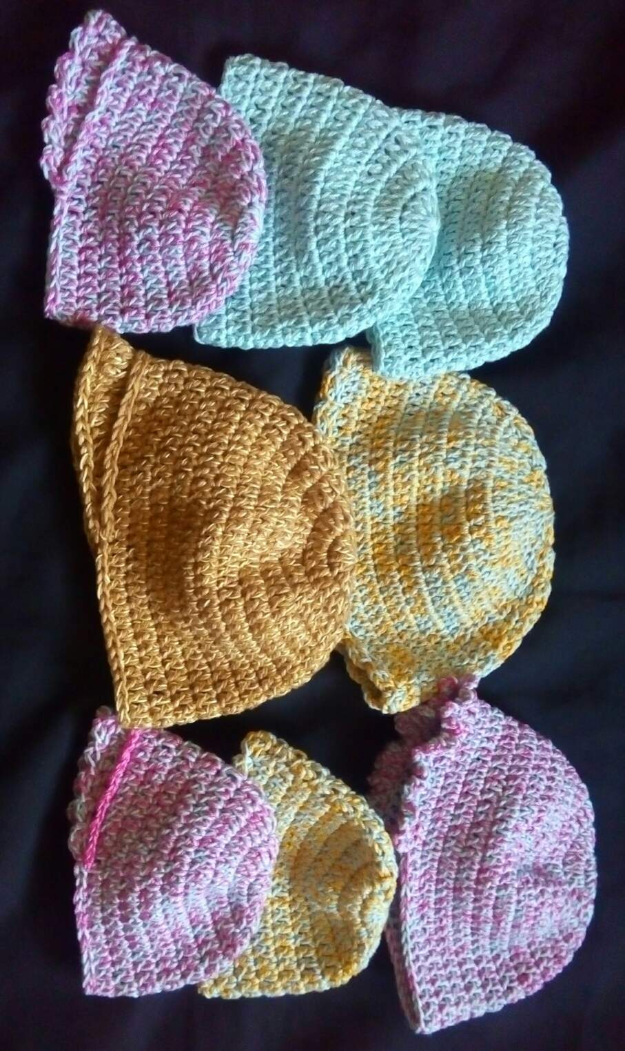 I have just donated 8 pcs for preemies size: 9" circumference x 3 1/2" height, Yeah, too cute, like for doll sizes! But, I must because there were already who made newborn sizes.