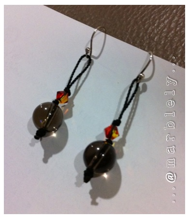 This was put together using Smokey Quartz stones and fire Swarovski crystals with black crochet yarn, hooked to Sterling Silver earring findings.