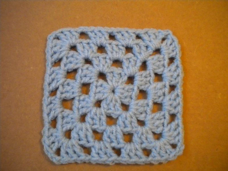 A crocheted square starting from the center, and added on row by row, all around the square in double crochet clusters. An example of a basic or classic granny square pattern can be found here: