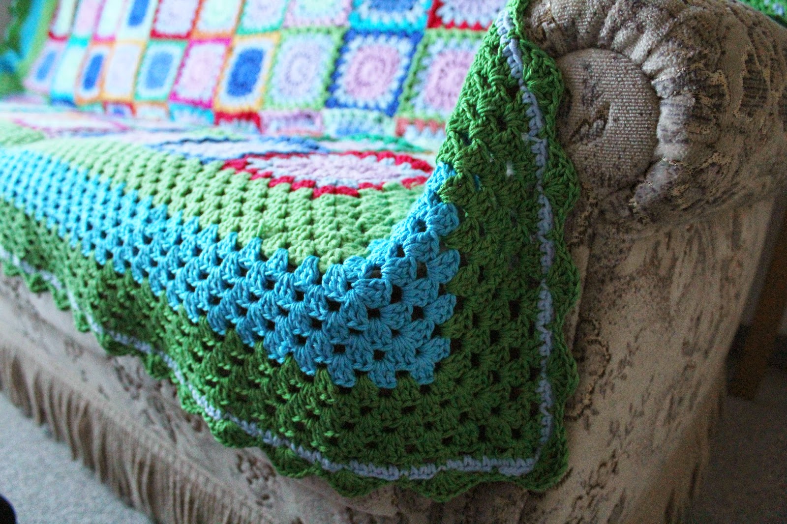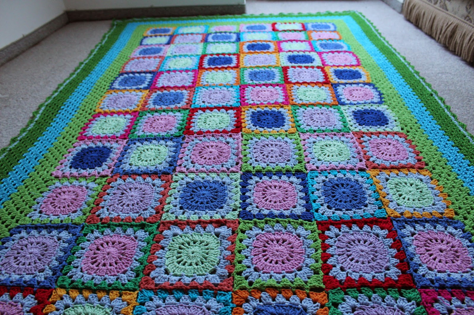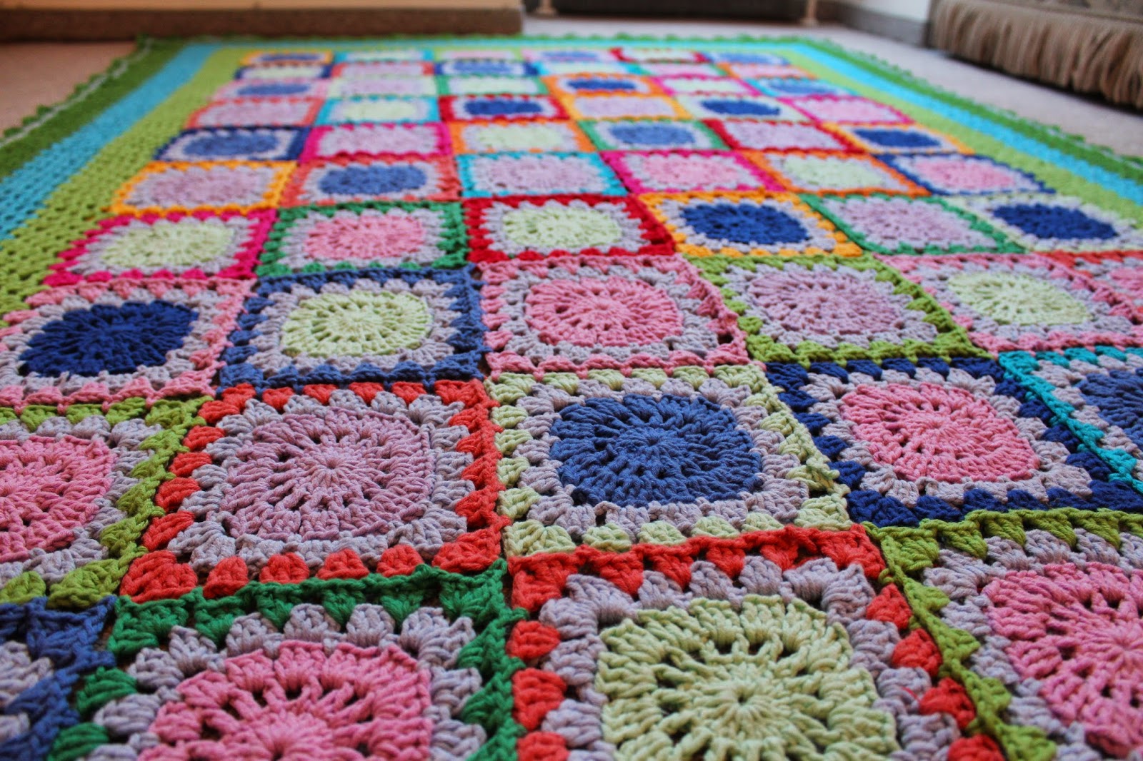 Today I´d like to share with you the blanket I made out of granny squares. The size of this project was not really planned, I just crocheted the squares during train rides to and from work until I found out that the number of squares were huge enough to make a blanket.