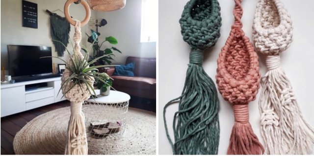 Some great macramé skills here especially those plant holders a brilliant idea which can of course be used to hold other things.