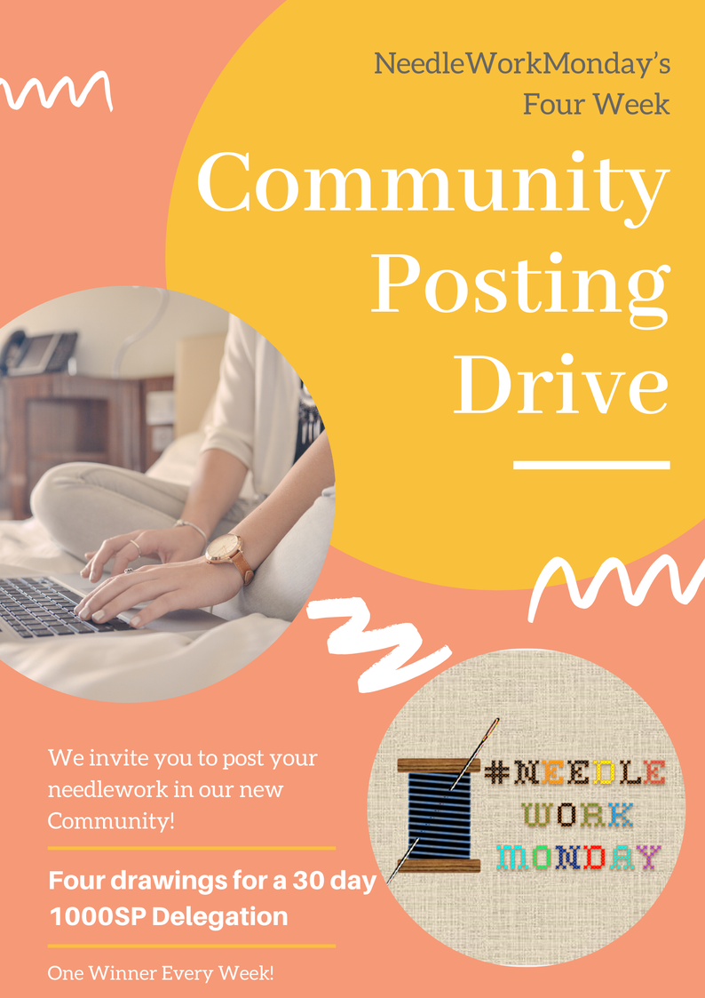 Starting next Monday on March 9th we are running a Four Week Community Posting Drive Challenge! We would like for you to post all of your needlework related content directly from the NeedleWorkMonday Community. Those who post their content from the Community will be entered into a drawing to win a: