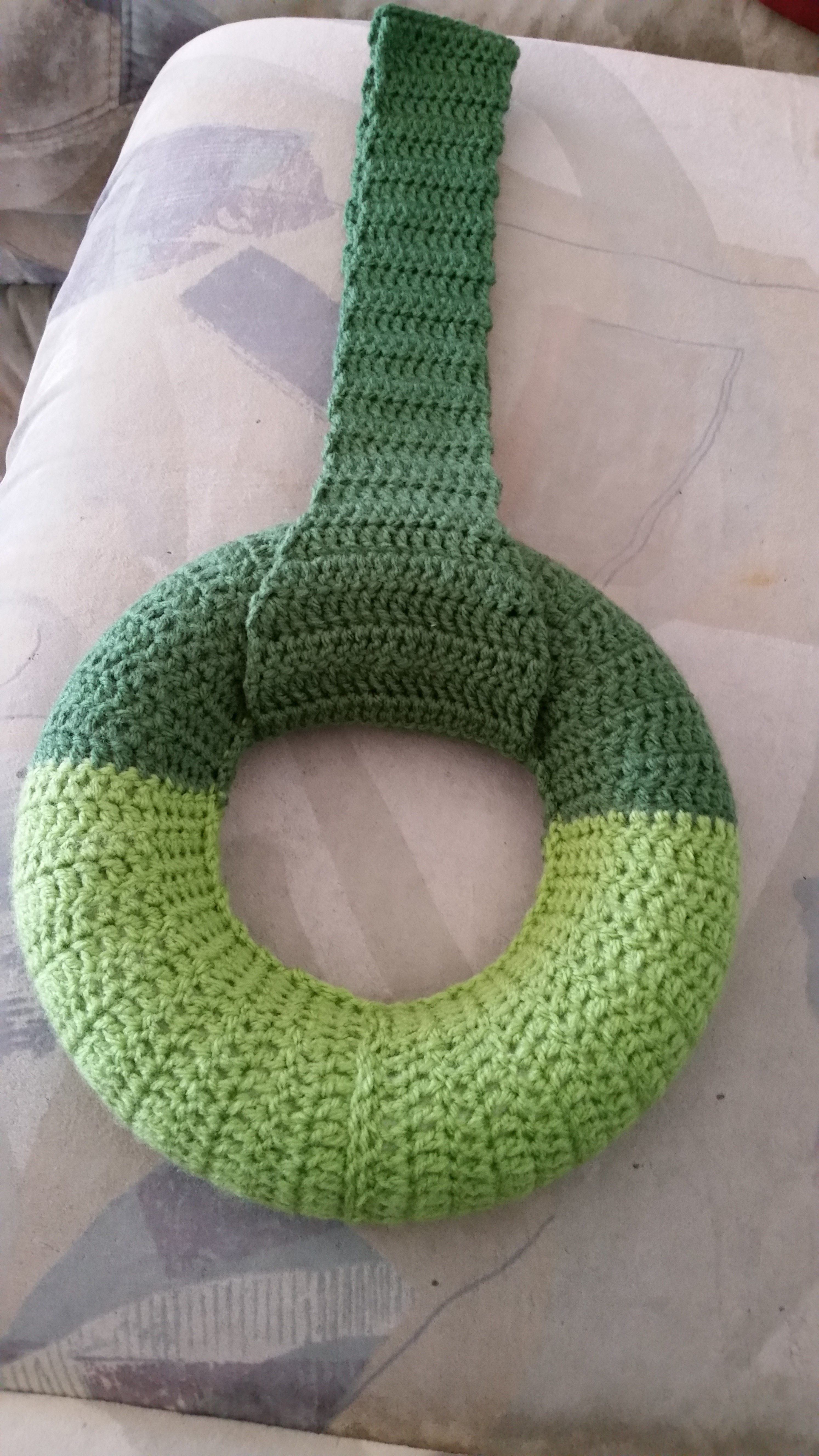 Und zum Schluß hab ich mit Doppelstäbchen eine 10 Maschenbreite Aufhängung gemacht. Alles auf den Türkranz drapiert und den Osterhasen zusammen genäht.