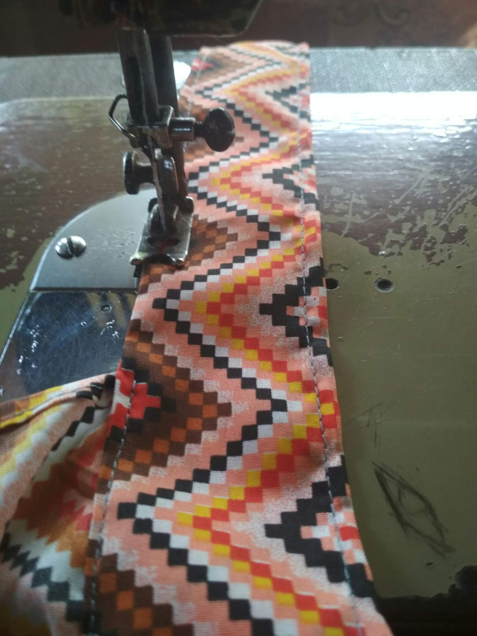 The excess will be made for the ribbon. Fold on the wrong side then sew.