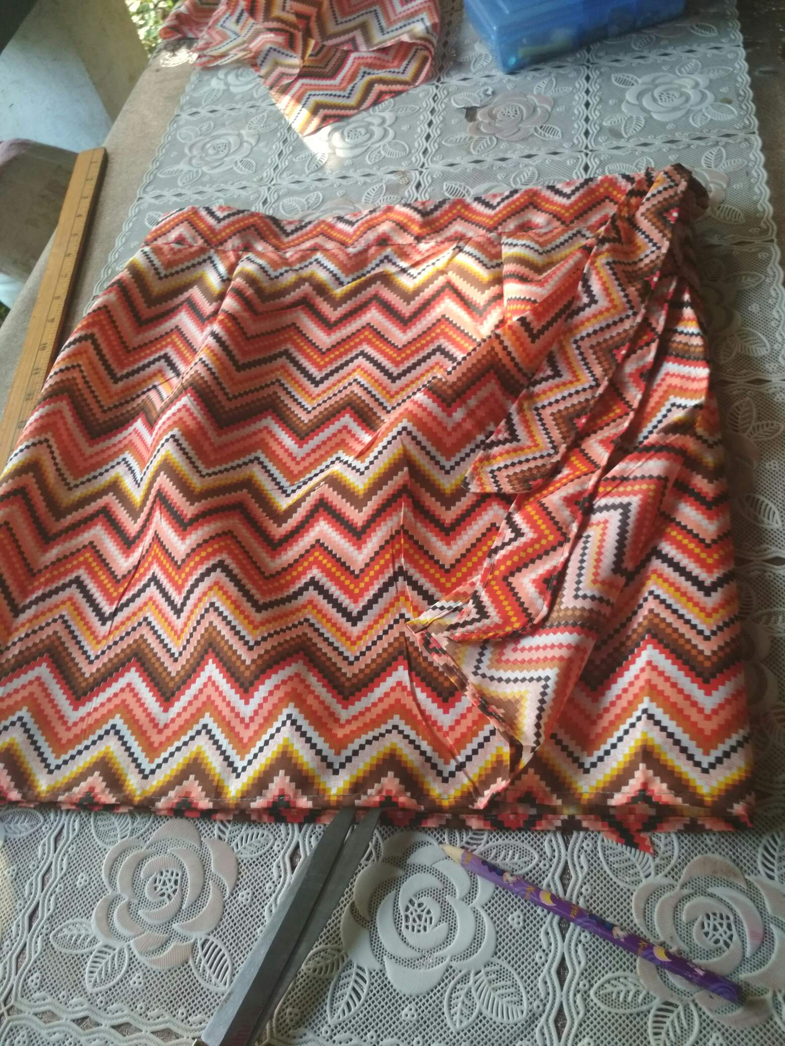 Well, I made a challenge to myself when I made this wrap-around skirt. I started at 14:23 then finished it at 16.04 hrs. Therefore, I was able to make it in less than two hours!