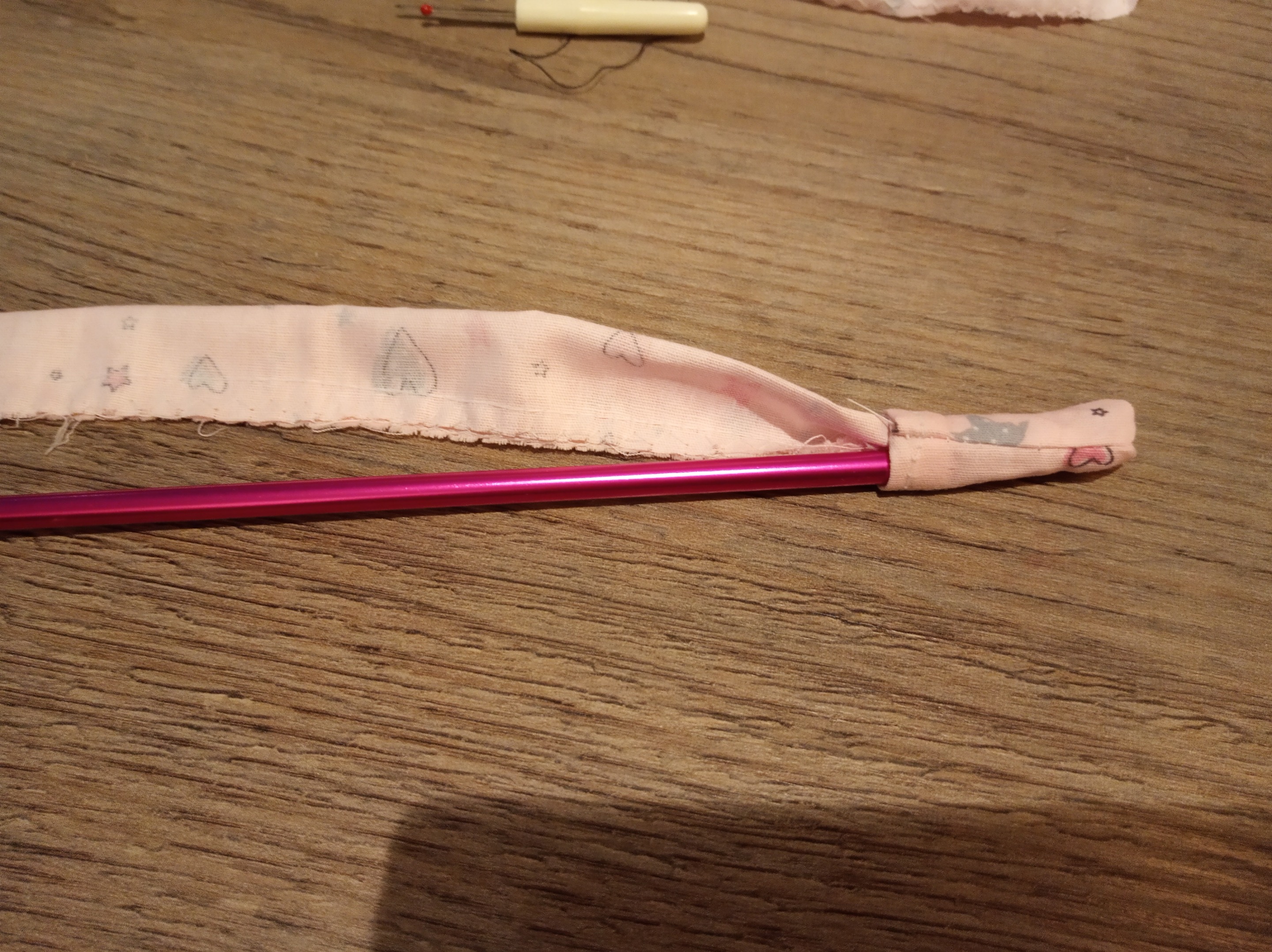 Then I turned it inside out.....That took soooo long because it was such a thin belt.....It is best to do this with a knitting needle