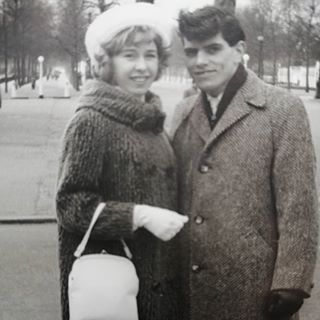 Source Nigel's mum and dad on their wedding day.