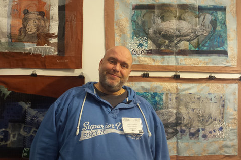This month was a talk by Nigel Cheney, who had grown up in Market Harborough, left to study embroidery in Manchester and then gone on lecture in textiles and fashion at NCAD in Dublin, Ireland's leading Art School. You can read more about Nigel's work in two interviews, here and here at Textile Artist.