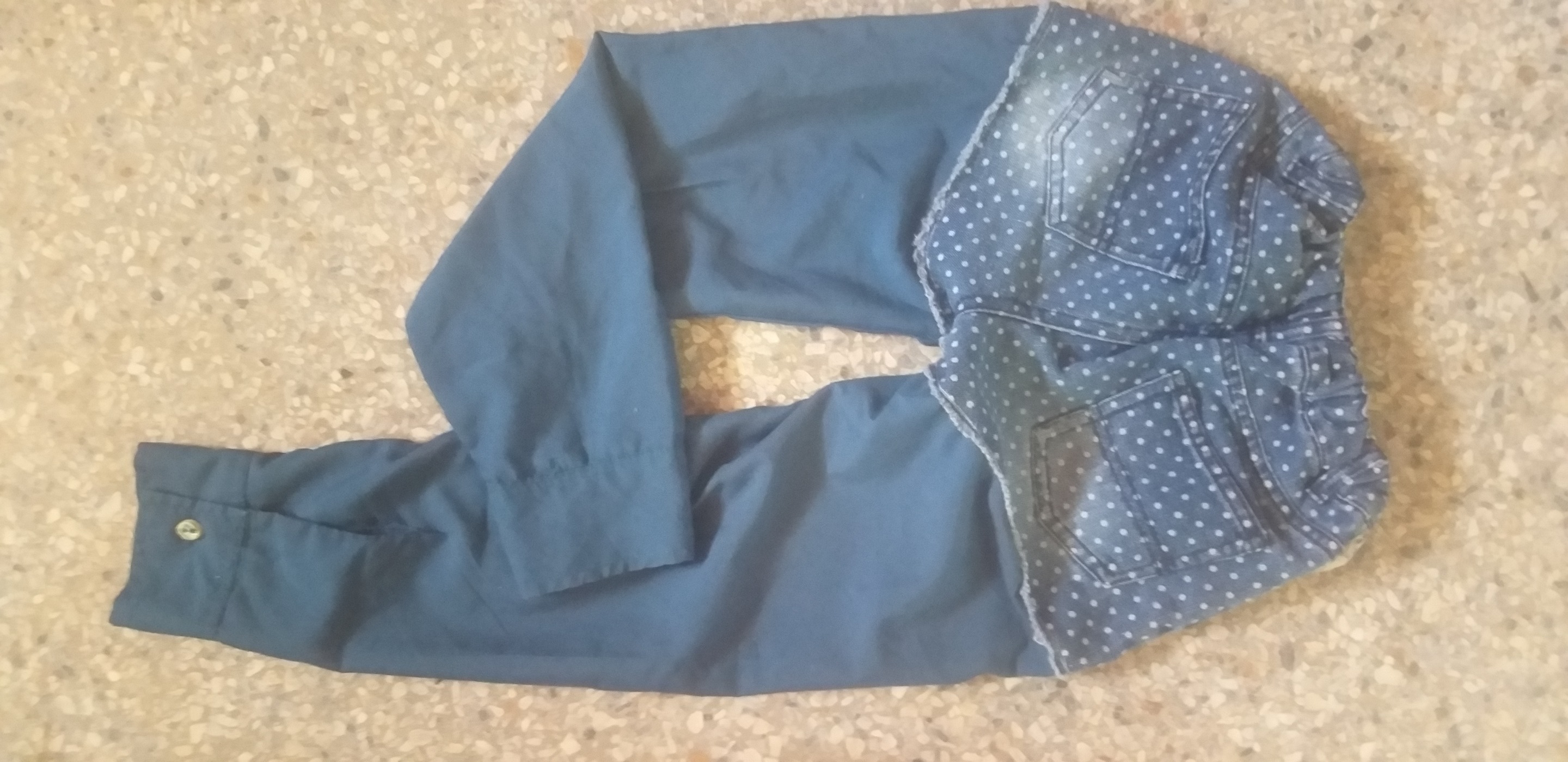 I found a long sleeve shirt, I mesure my daughter leg, and she has smaller legs than those sleves... so... Encontré una camisa manga larga, medi las piernas de mi hija, y aún son más cortas que esas mangas.. así...