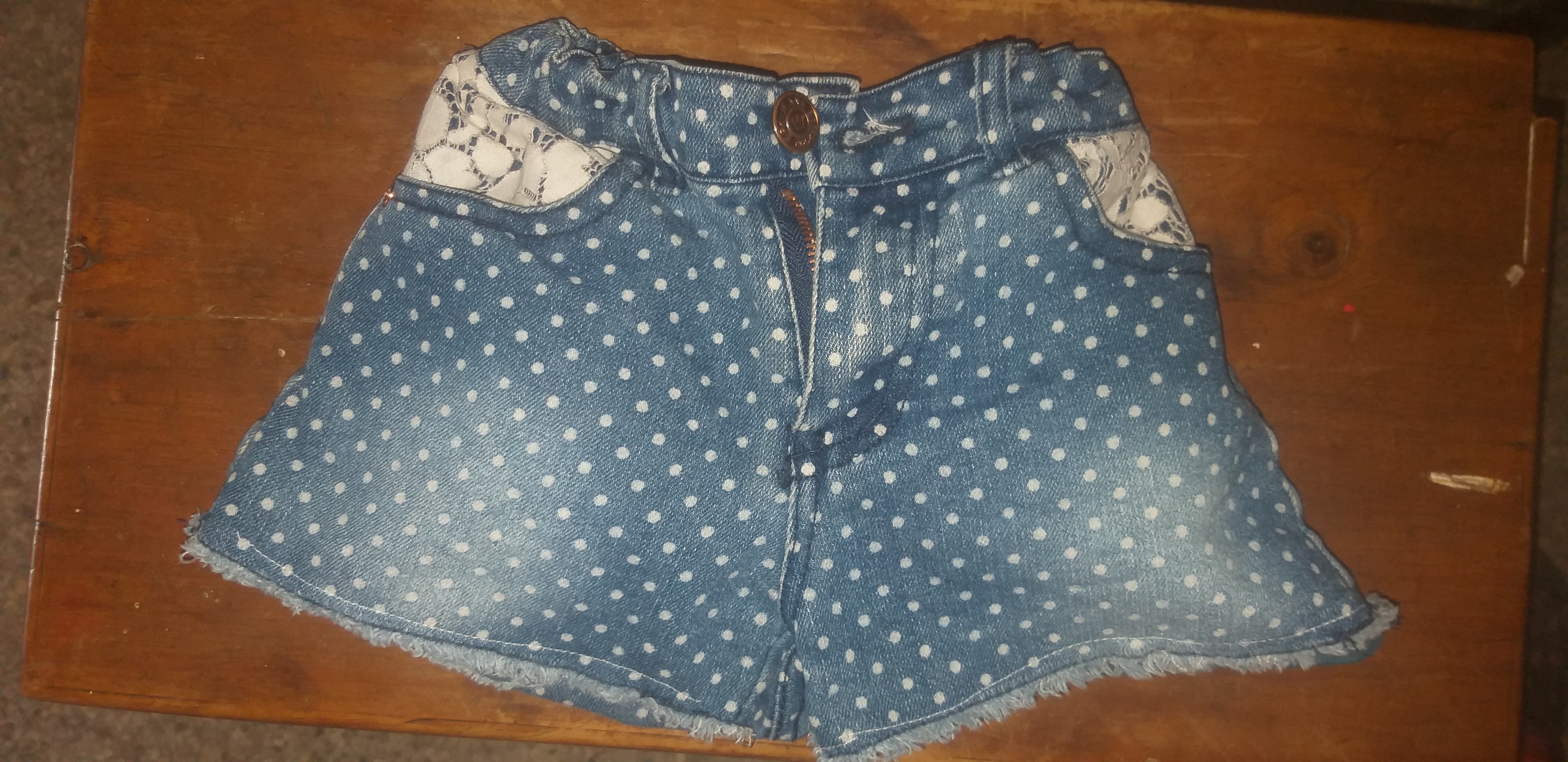 A friend give me a short from his daughter, but I live in a big backyard home, full of dirt a mosquitoes so I am not into my baby using short ... so I was looking around how transform them... Un amigo me regalo estos Shorts, pero como vivo en una casa con patio grande, lleno de tierra y zancudos, la verdad no me gusta que ella use pantalones cortos asi que bueno decidí transformarlos...