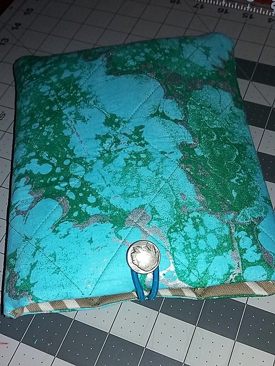 I love to receive homemade gifts, and thought that they would too! I added an inch in the width when I cut the material, however as my sewing skills were improving it ended up a little bigger. This one is perfect for hardback books as well as paperback.