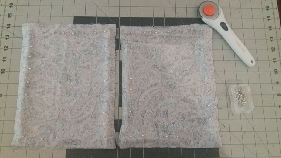First I cut the material (8"x10.5"). To make it easier I cut 4 pieces from the same fabric, then I pinned them right sides together.
